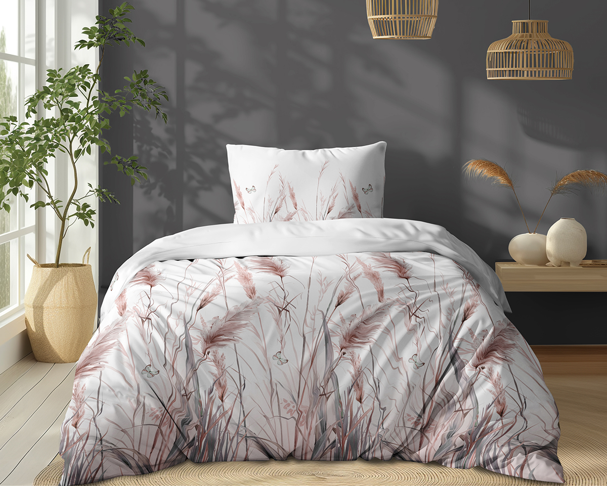 Pościel Bawełniana 140x200cm Łąka Trawy na jasnym tle