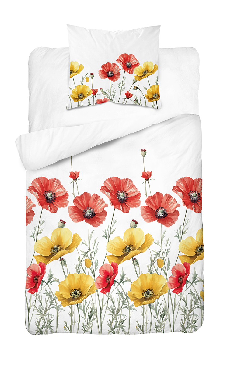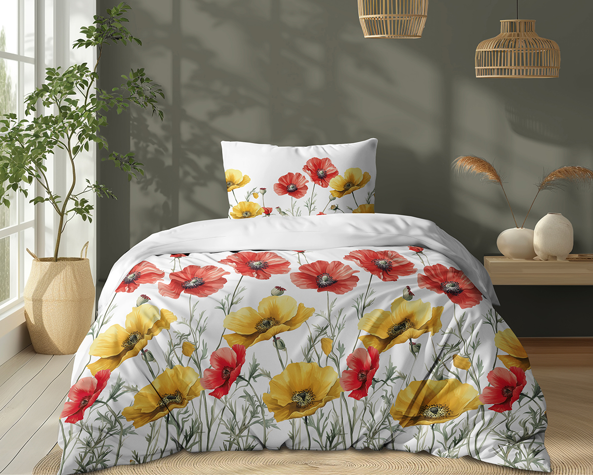 Pościel Bawełniana 140x200cm Maki kolorowe na jasnym tle