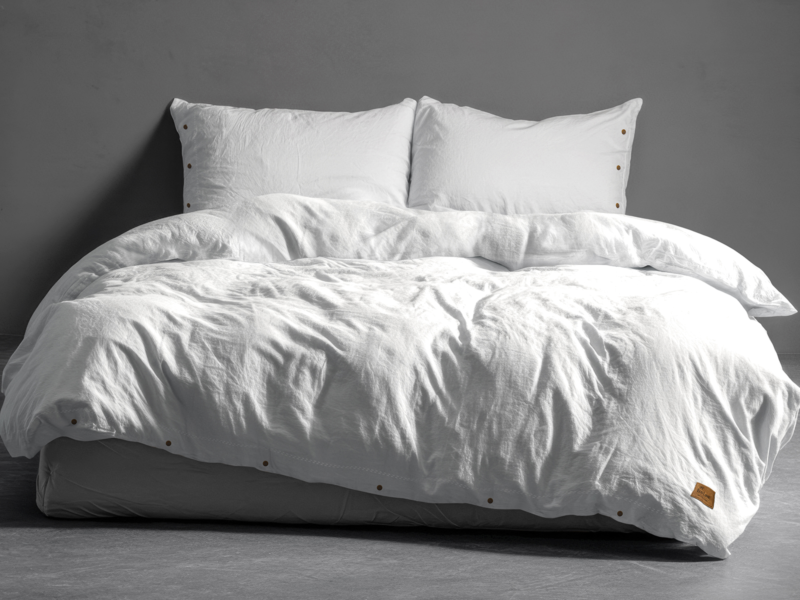 Pościel Bawełniana 160x200 Gładka z Ozdobnymi Guzikami Premium – PURE ECO LINE