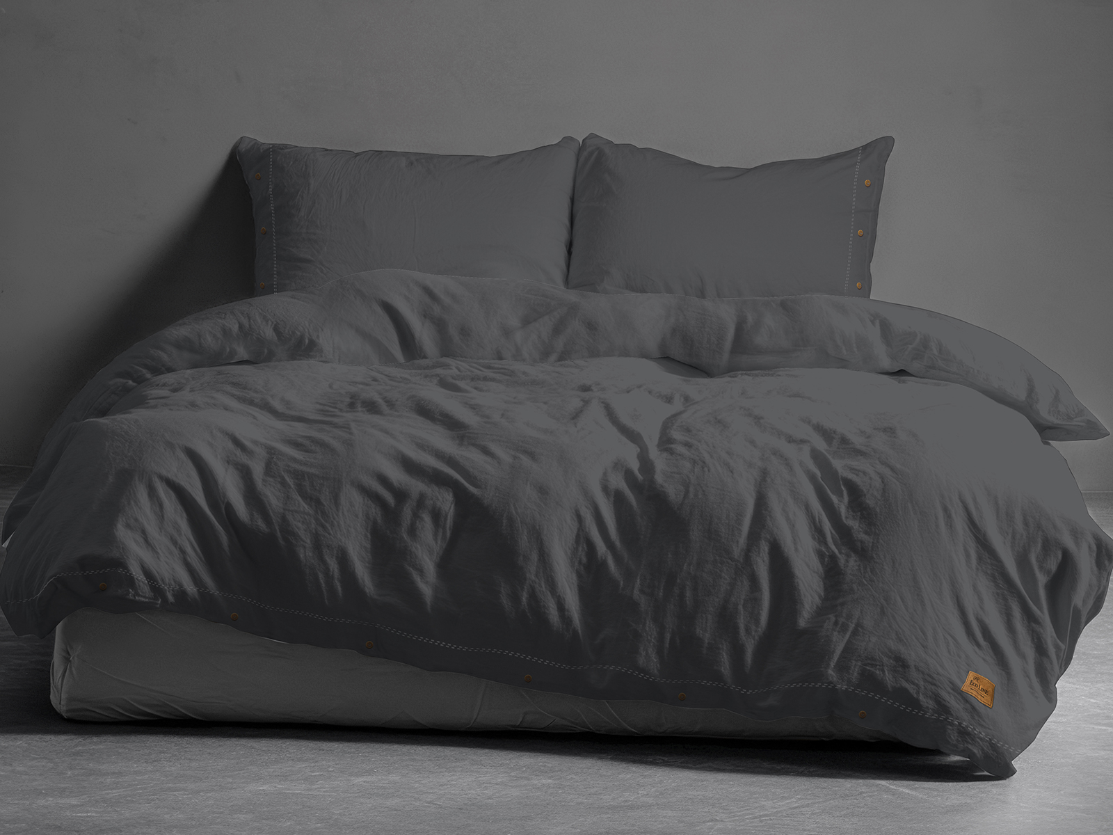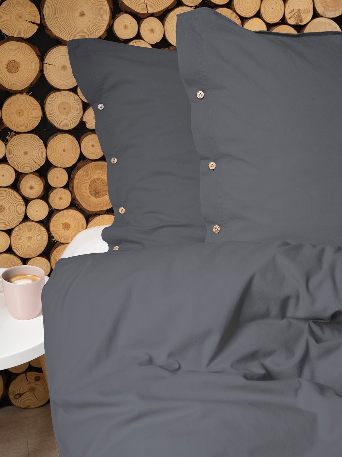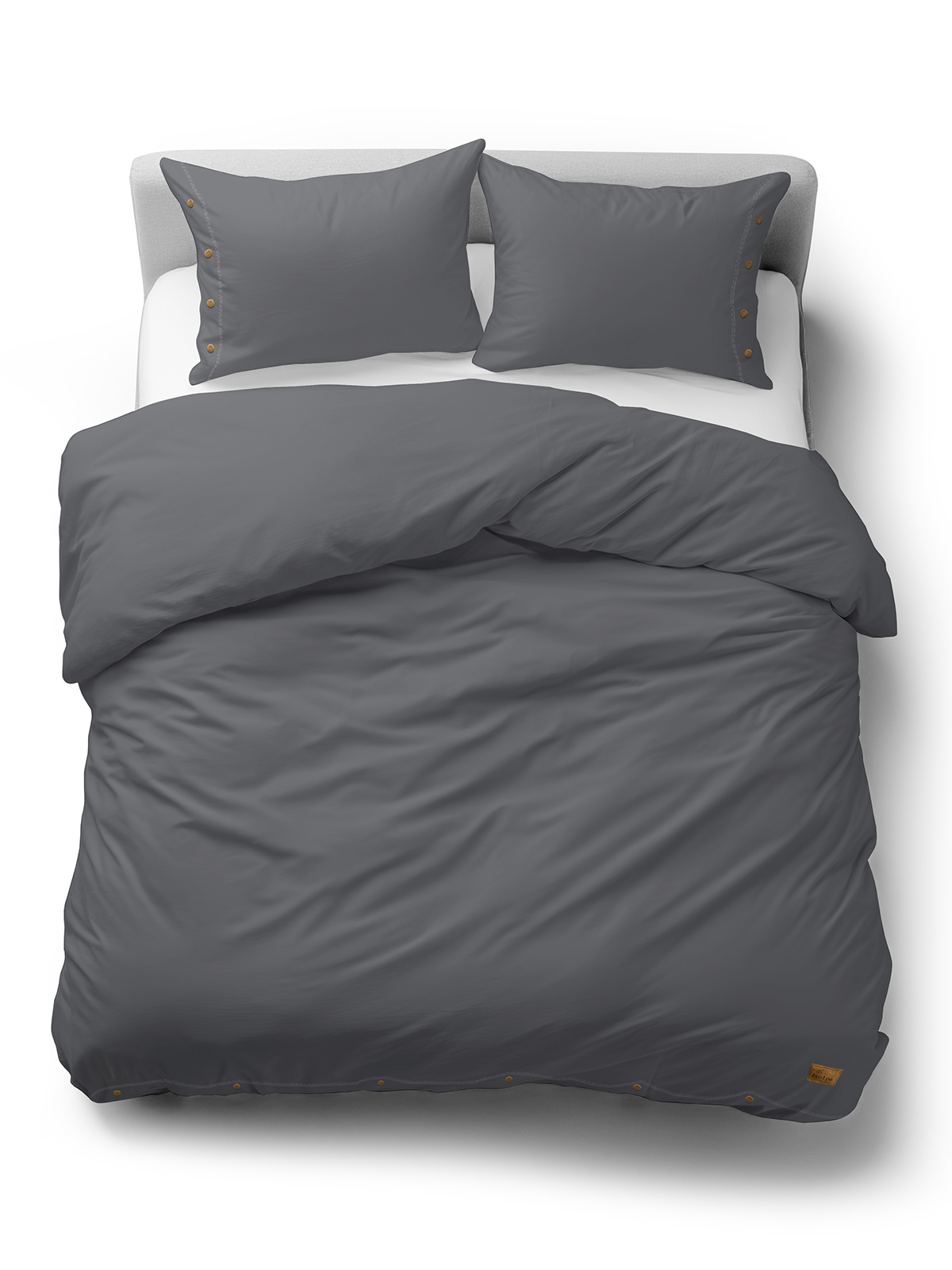 Pościel Bawełniana 160x200 Gładka z ozdobnym guzikiem Premium grafitowa