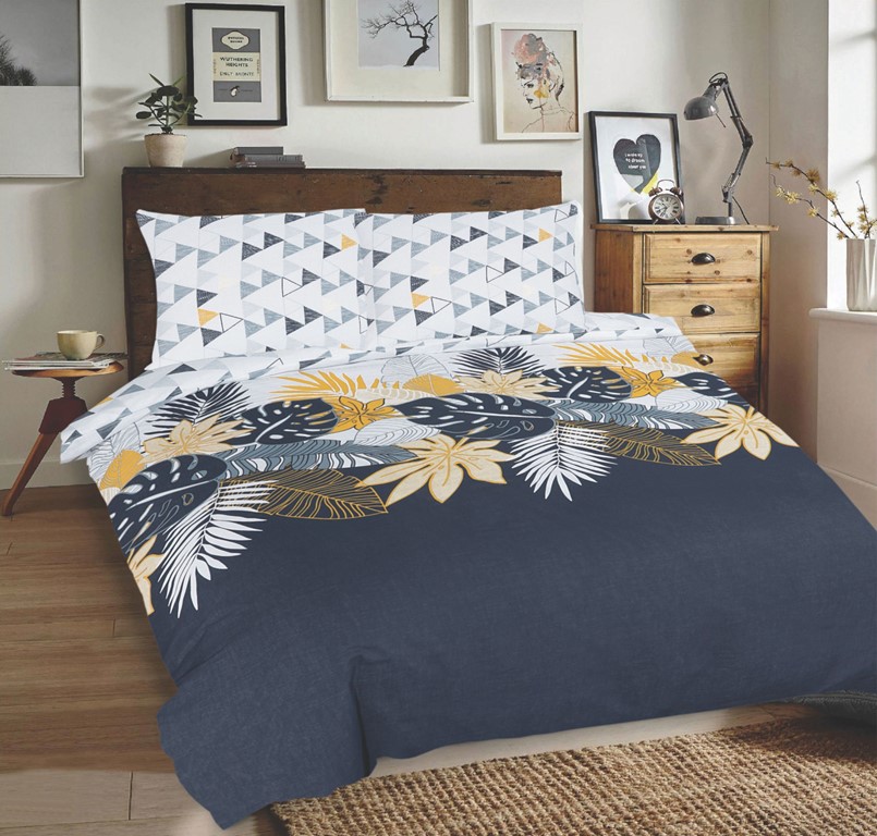 Pościel Bawełniana 160x200 UNIVERSAL Kwiaty na granacie
