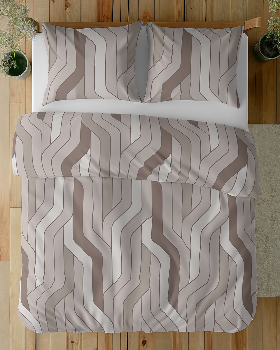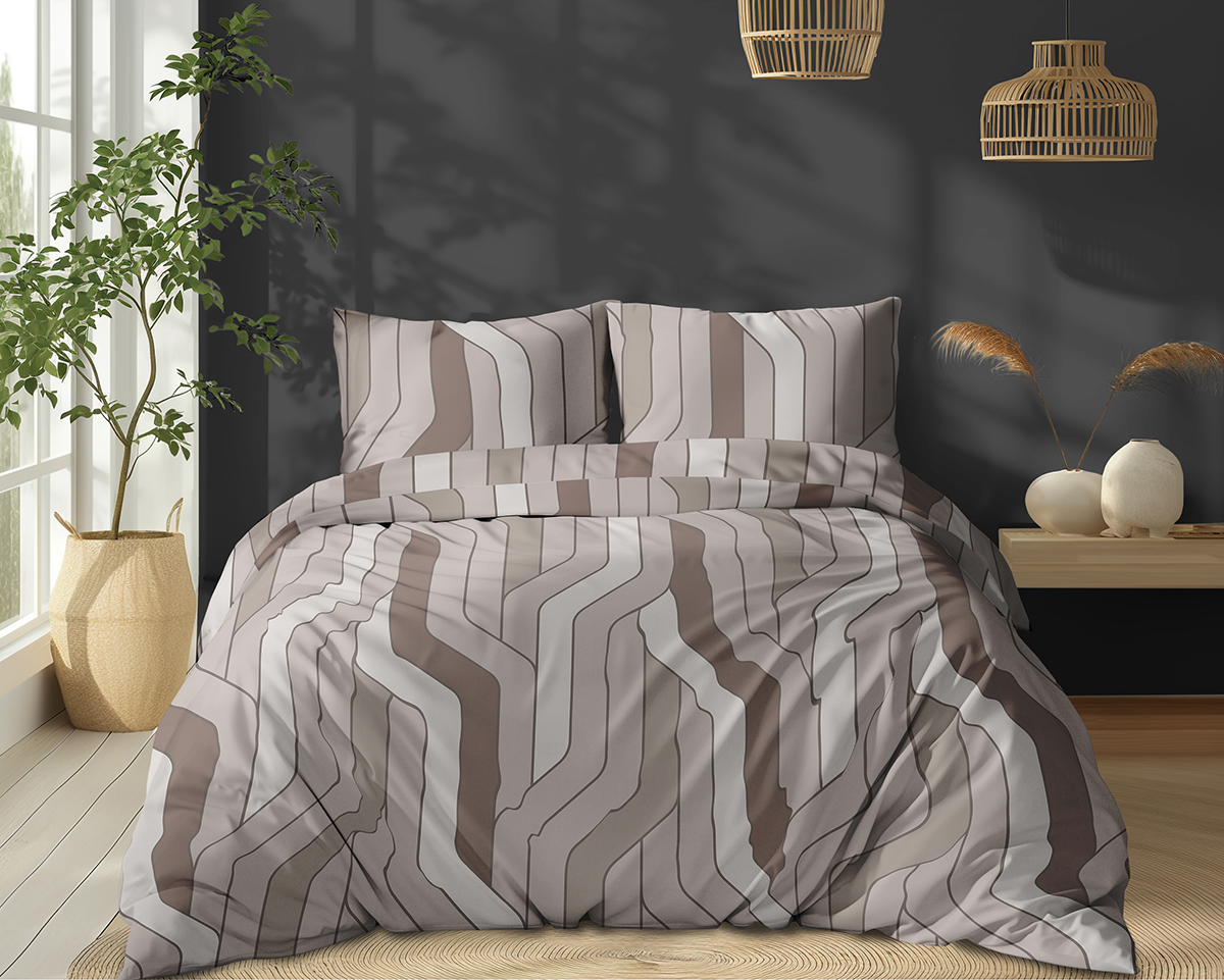 Pościel Bawełniana 160x200cm Geometryczna Beżowa