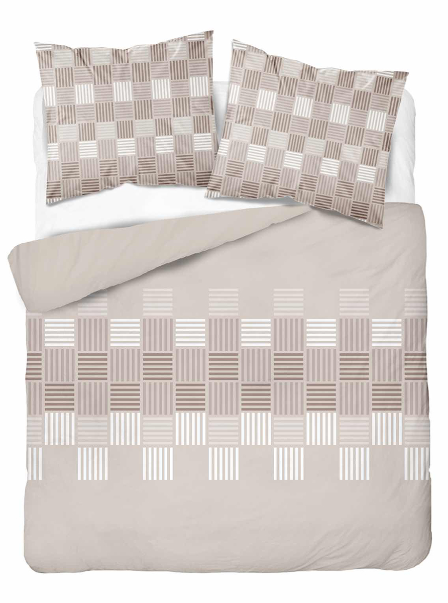 Pościel Bawełniana 160x200cm Geometryczna Beżowa
