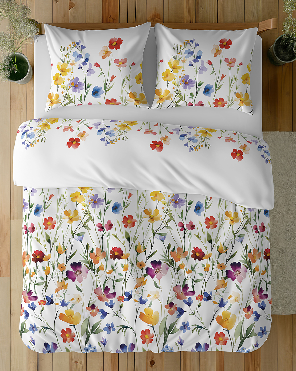 Pościel Bawełniana 160x200cm Kwiaty kolorowe na jasnym tle