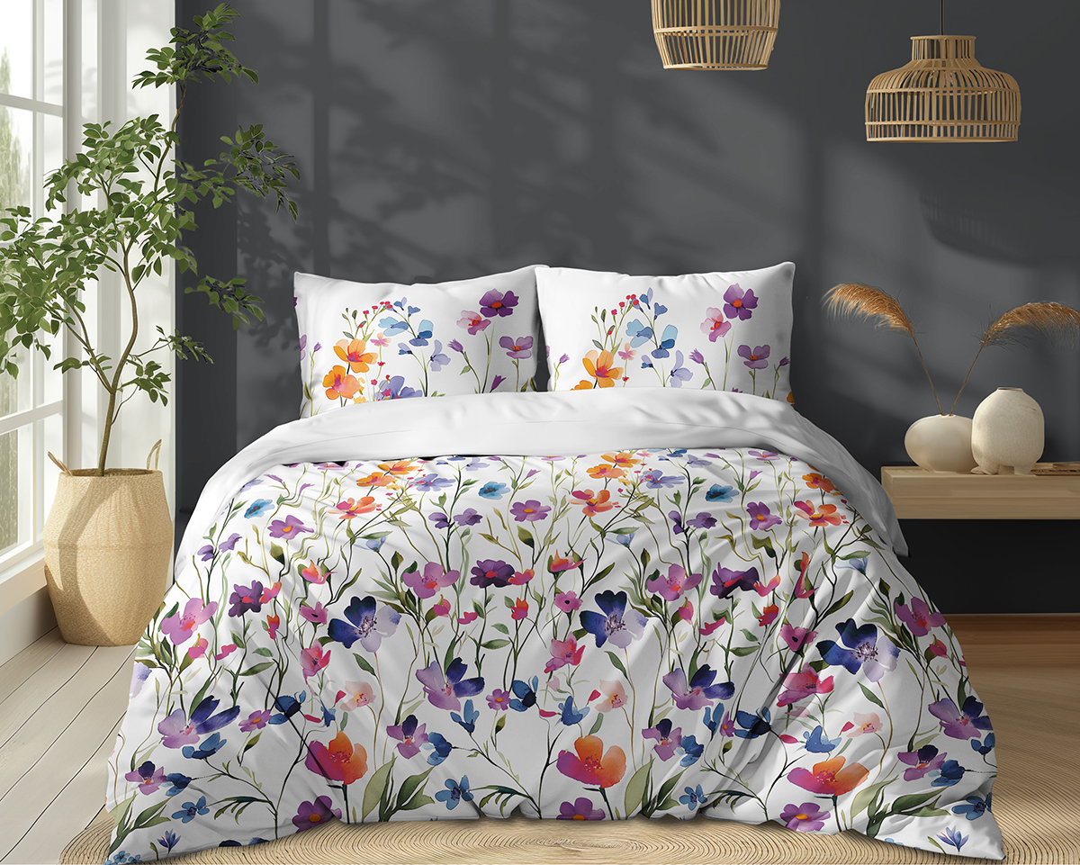 Pościel Bawełniana 160x200cm Kwiaty kolorowe na jasnym tle