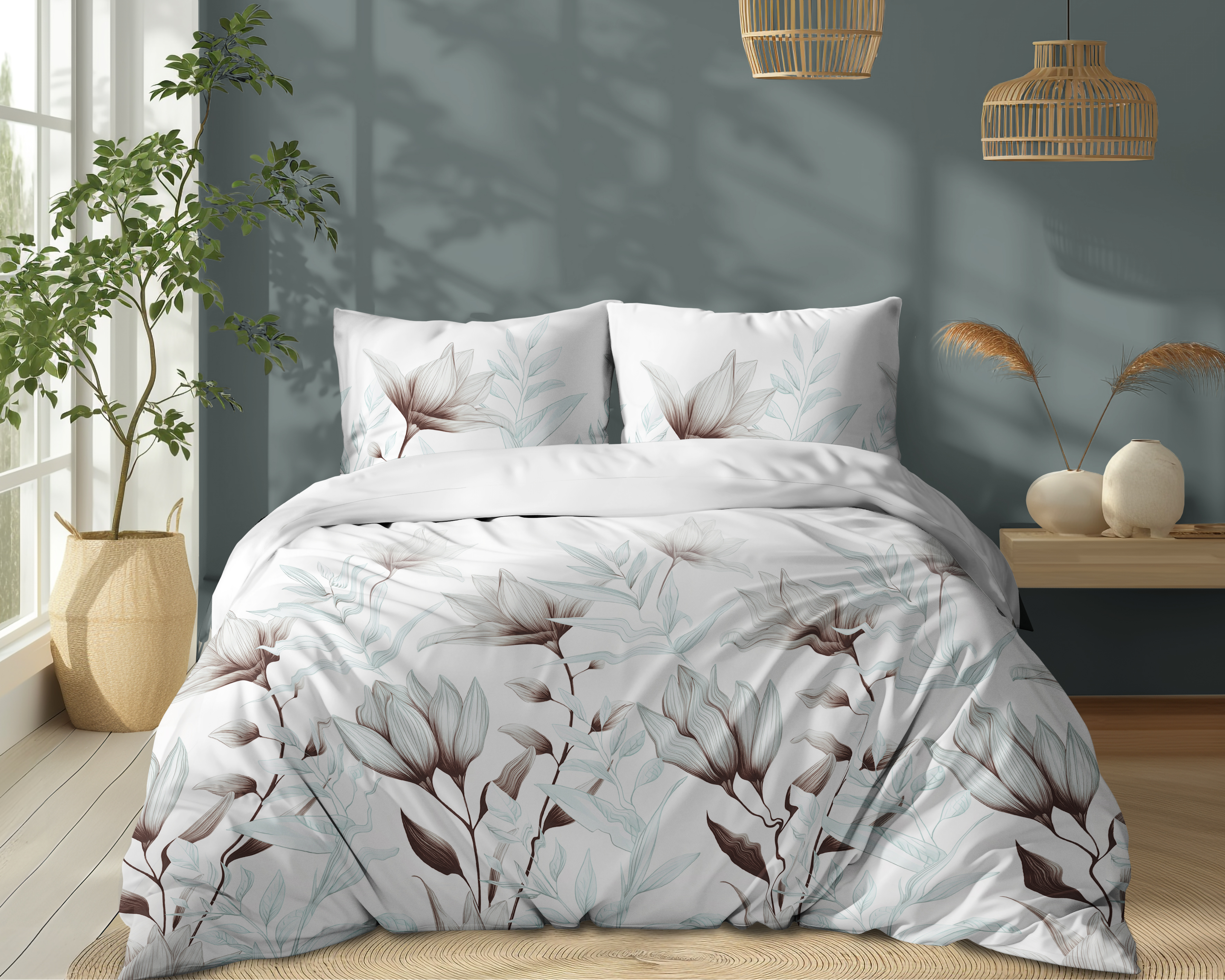 Pościel Bawełniana 160x200cm Kwiaty na jasnym tle