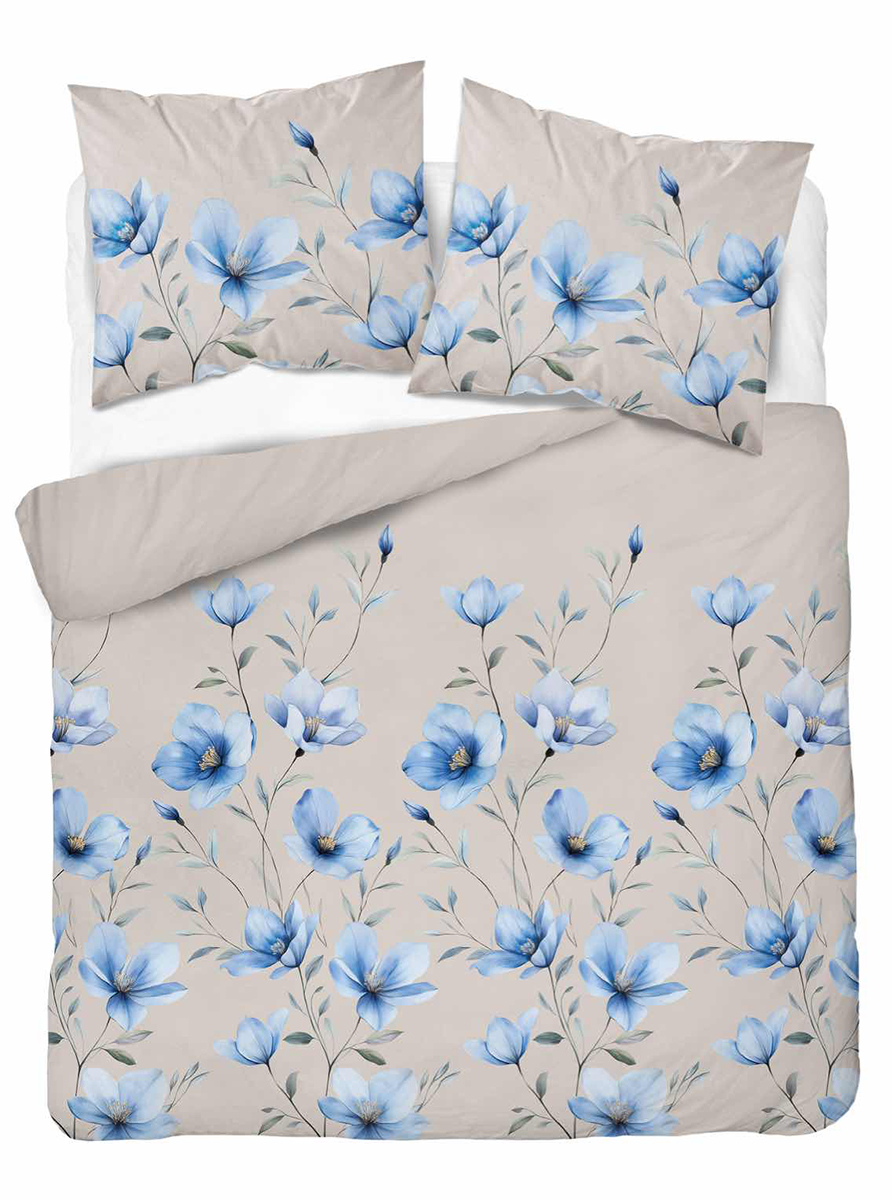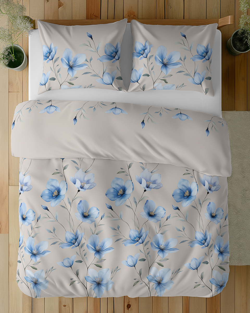 Pościel Bawełniana 160x200cm Kwiaty niebieskie