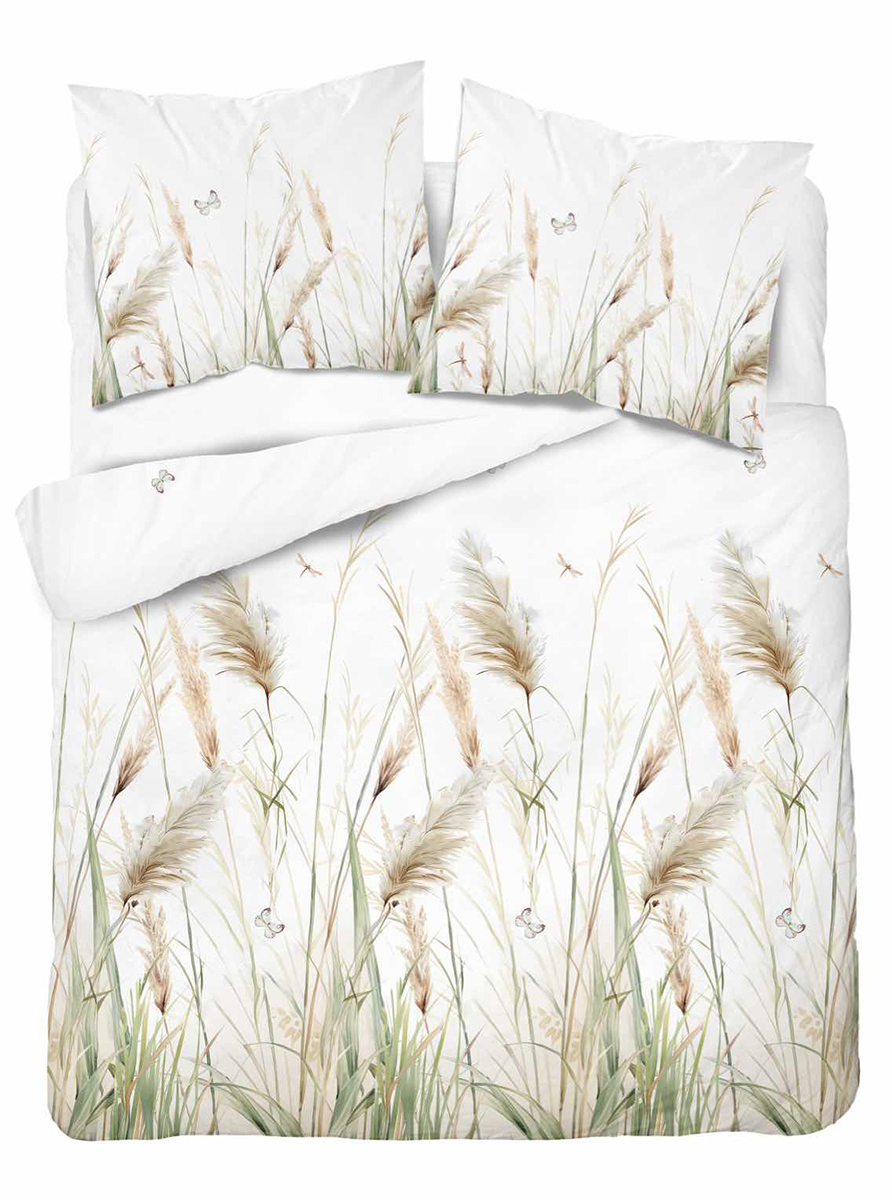 Pościel Bawełniana 160x200cm Łąka Trawy na jasnym tle