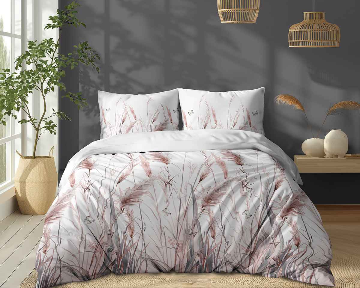 Pościel Bawełniana 160x200cm Łąka Trawy na jasnym tle