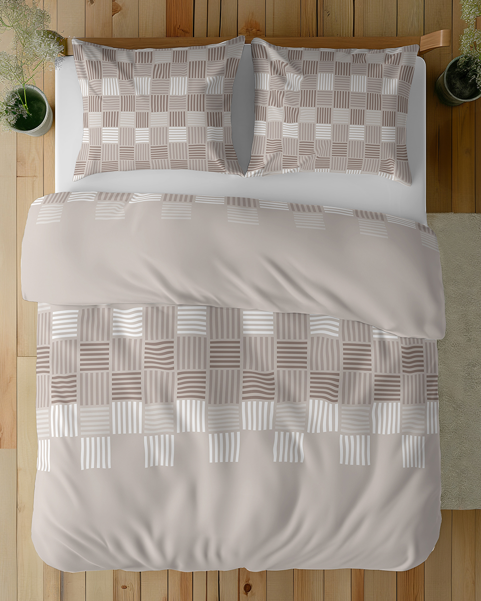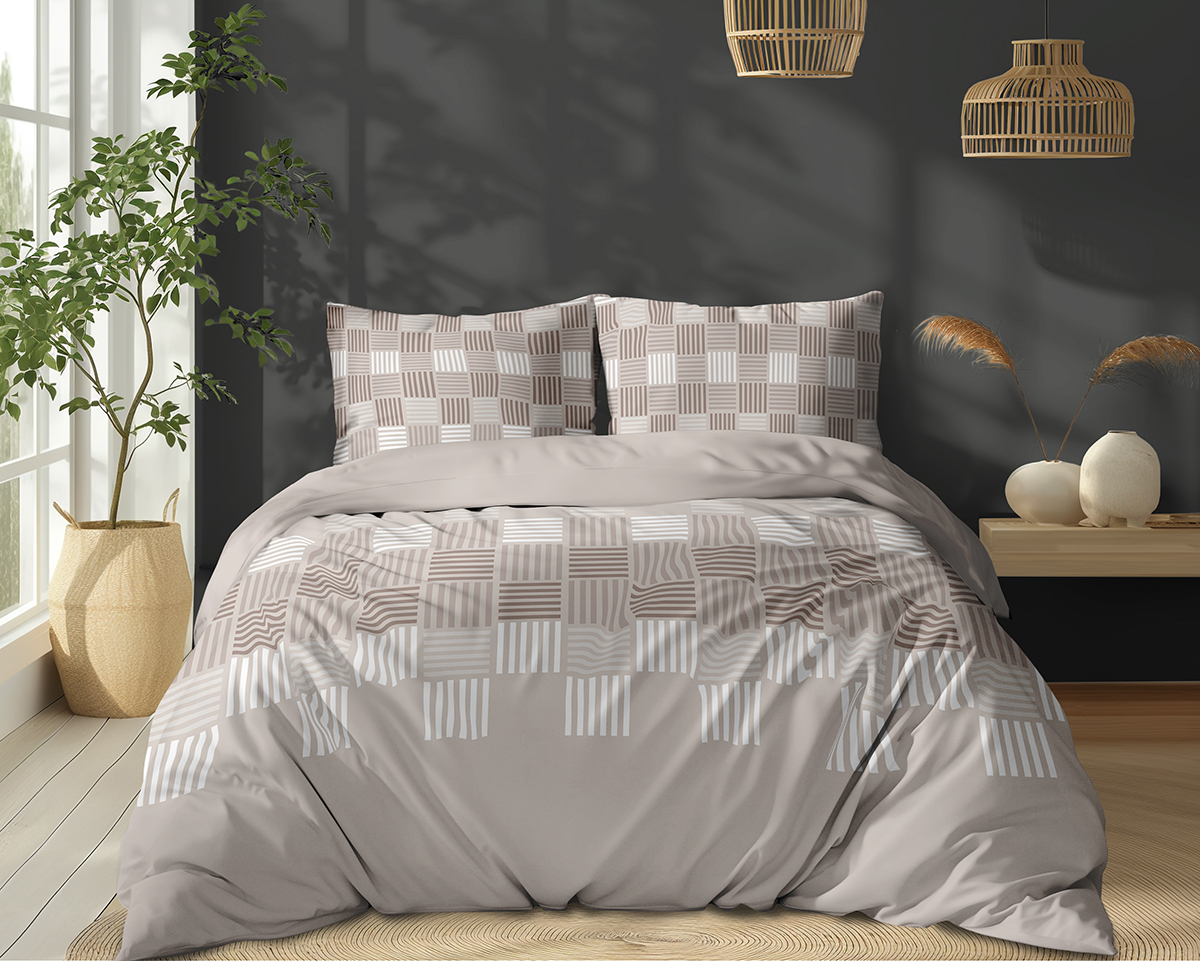 Pościel Bawełniana 180x200cm Geometryczna Beżowa