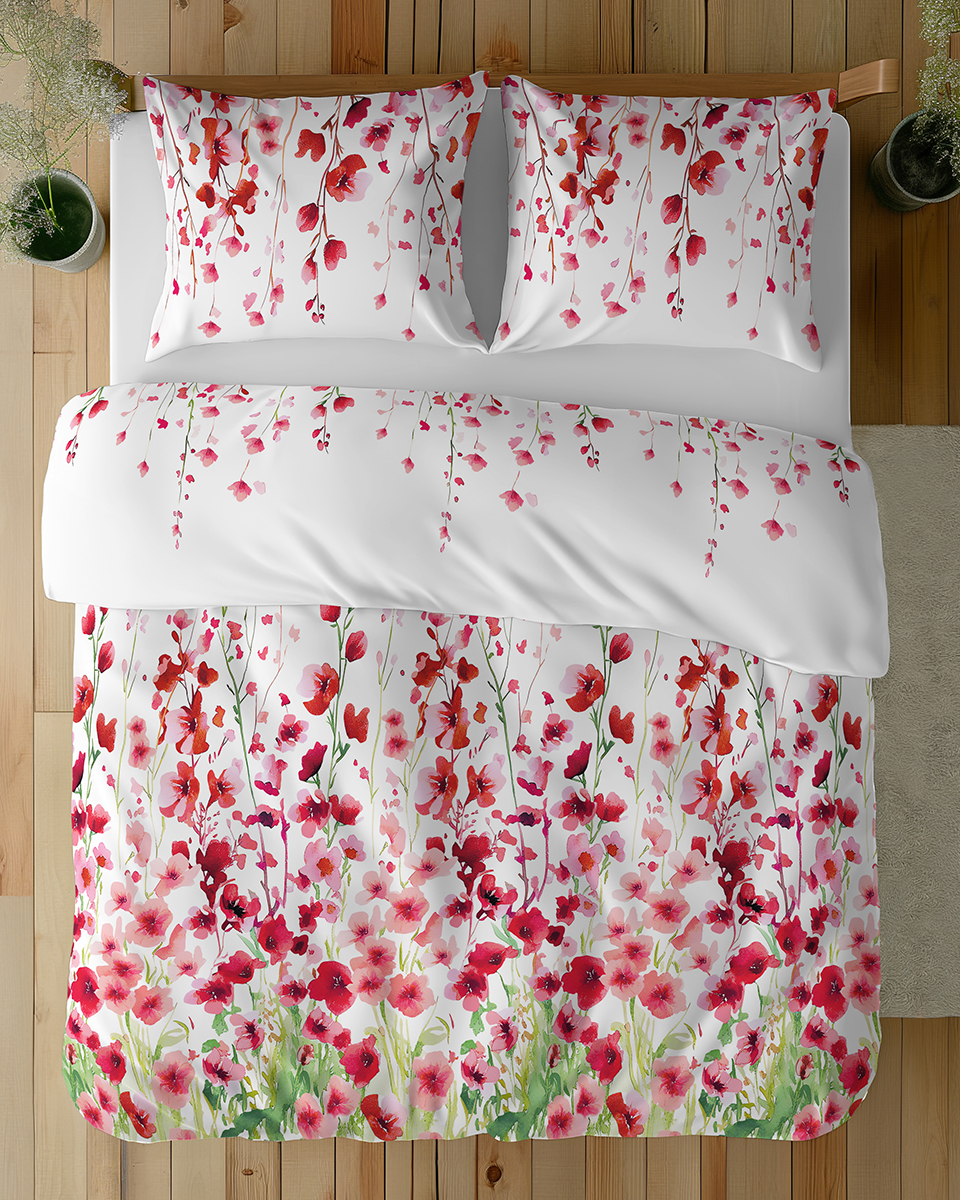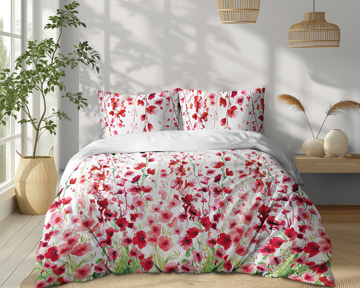 Pościel Bawełniana 180x200cm Kwiaty czerwone na jasnym tle