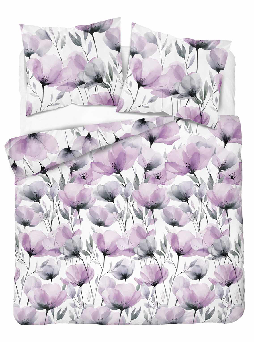 Pościel Bawełniana 180x200cm Kwiaty fiołkowe na jasnym tle