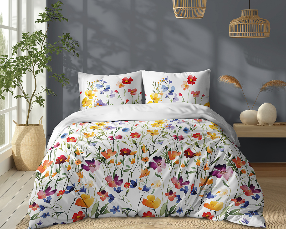 Pościel Bawełniana 180x200cm Kwiaty kolorowe na jasnym tle