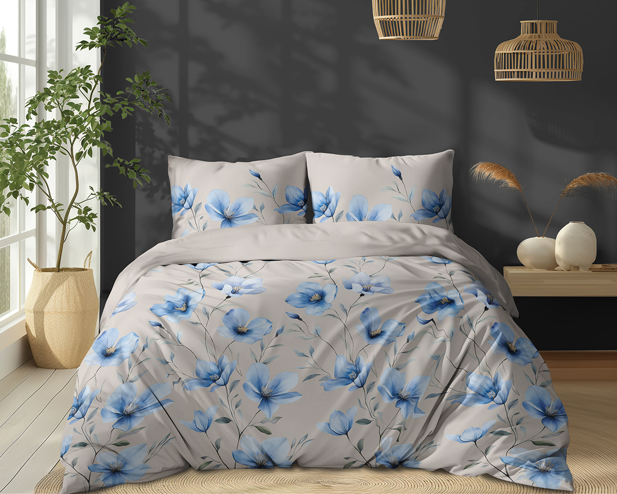Pościel Bawełniana 180x200cm Kwiaty niebieskie