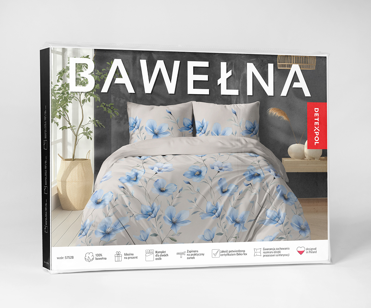 Komplet pościeli marki Detexpol zawiera poszwę na kołdrę o wymiarze 180x200 oraz 2 poszewki na poduszki o wymiarach 70x80.