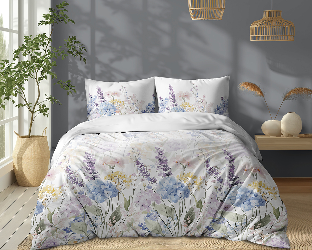 Pościel Bawełniana 180x200cm Kwiaty pastelowe na jasnym tle