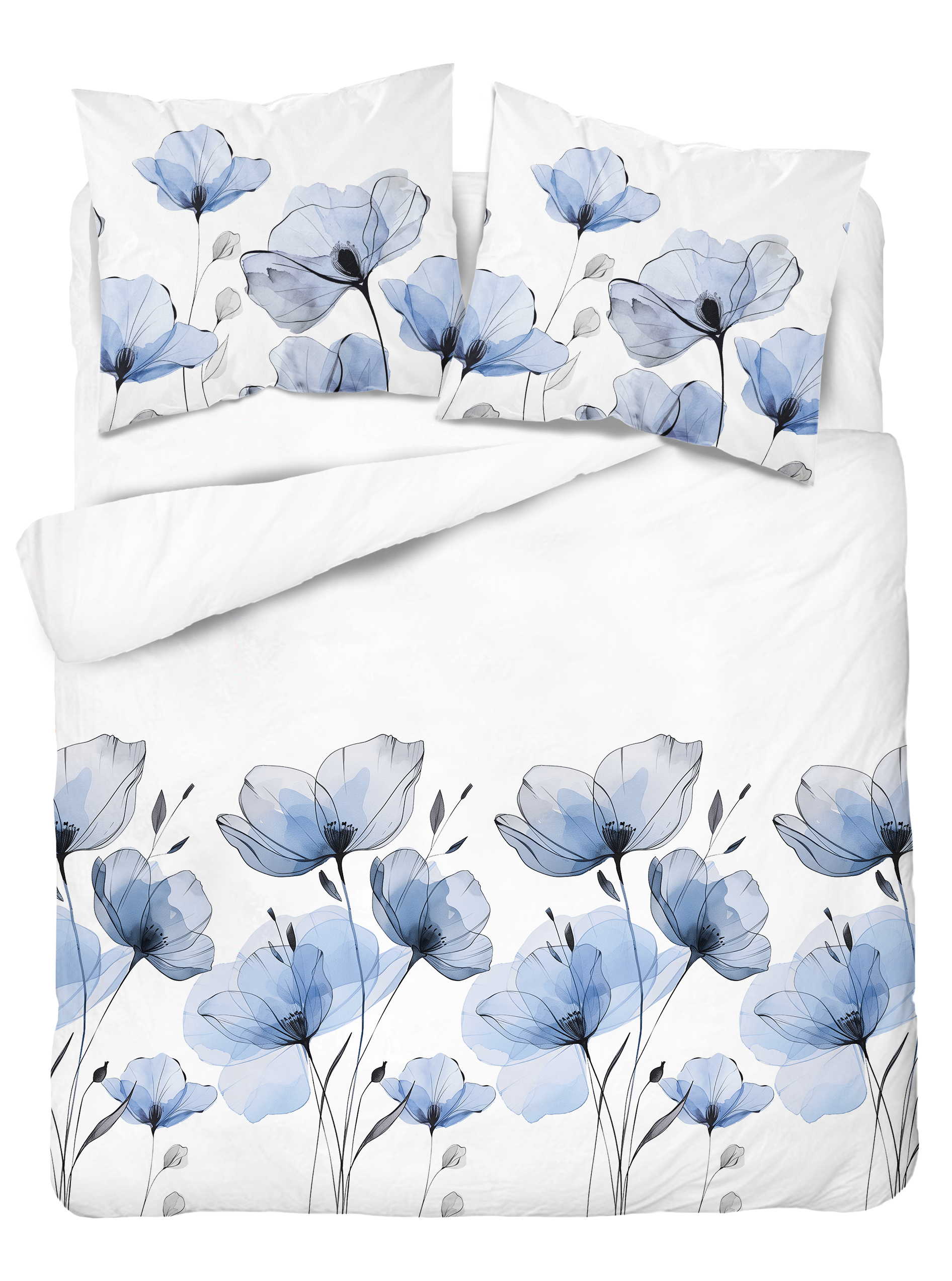 Pościel Bawełniana 220x200cm Kwiaty błękitne na jasnym tle