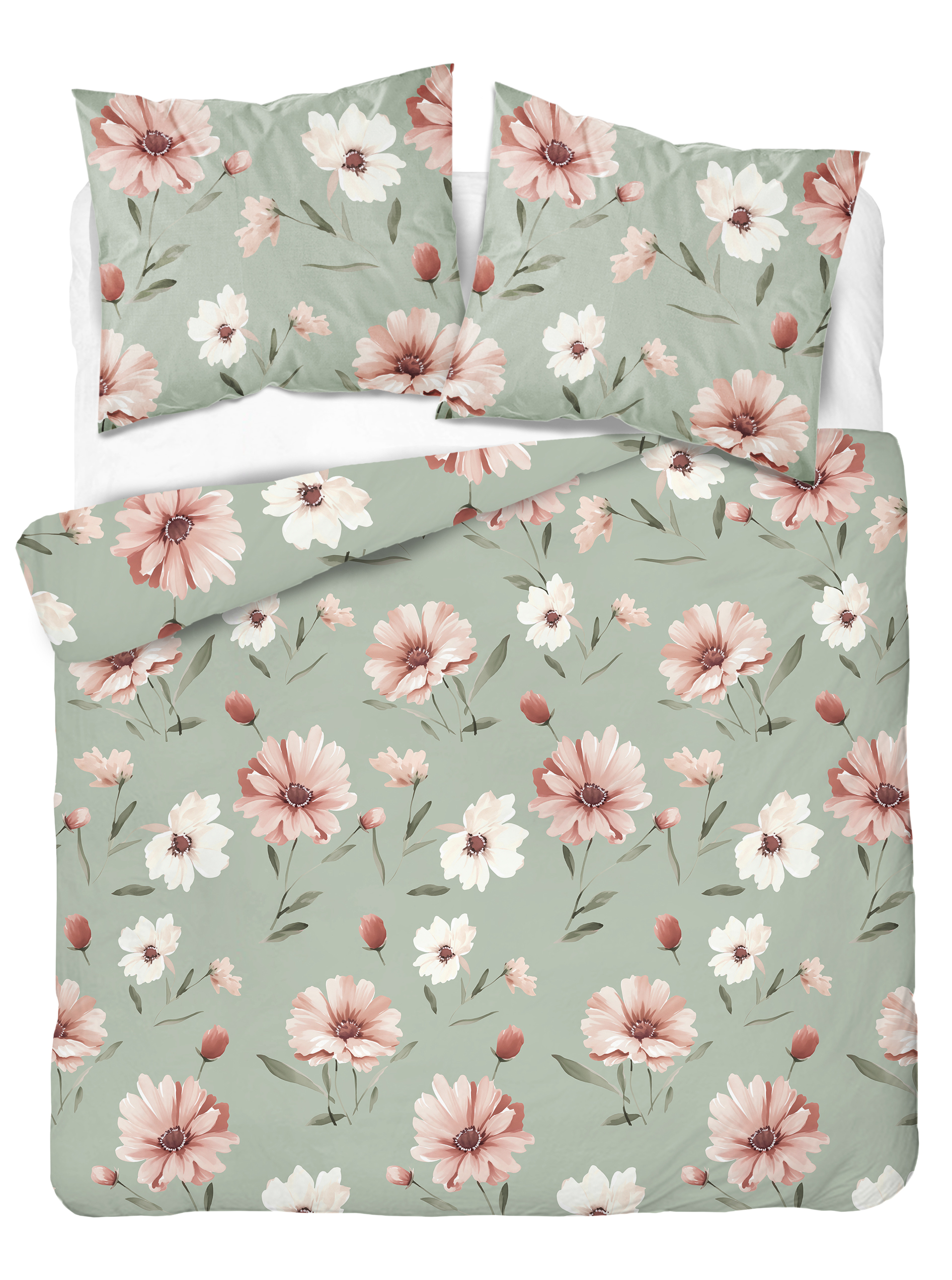 Pościel Bawełniana 220x200cm Kwiaty na miętowym tle