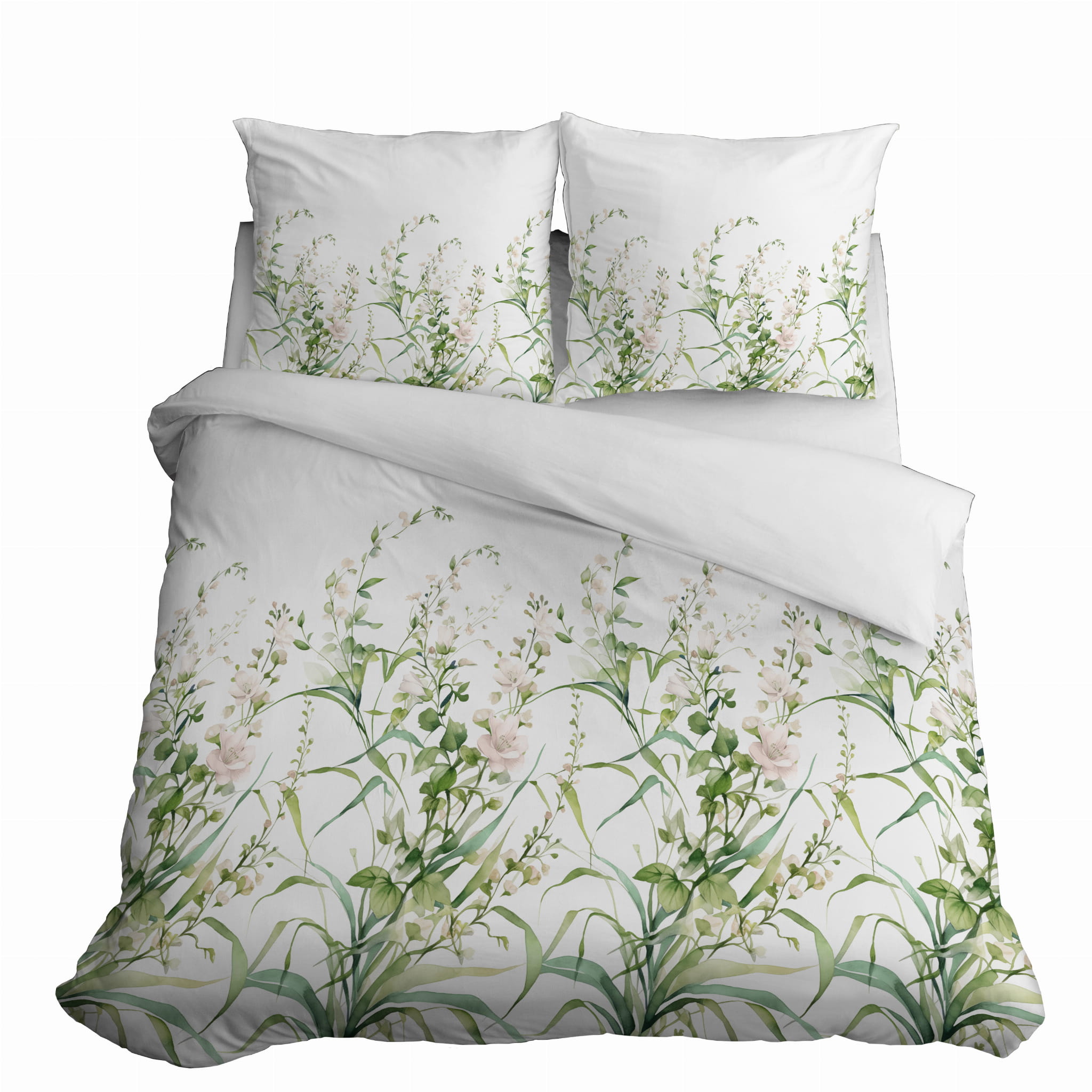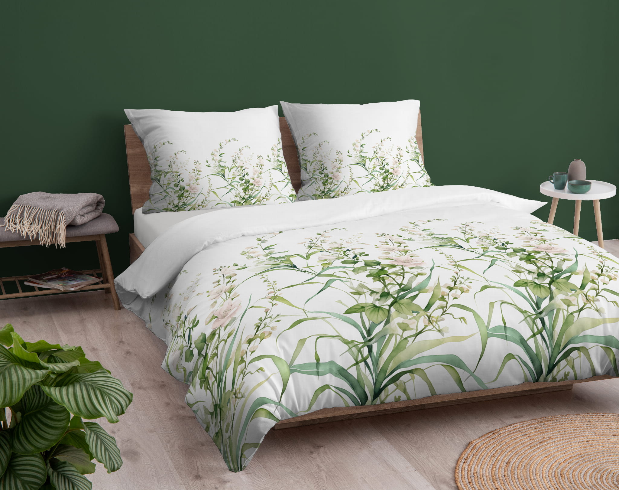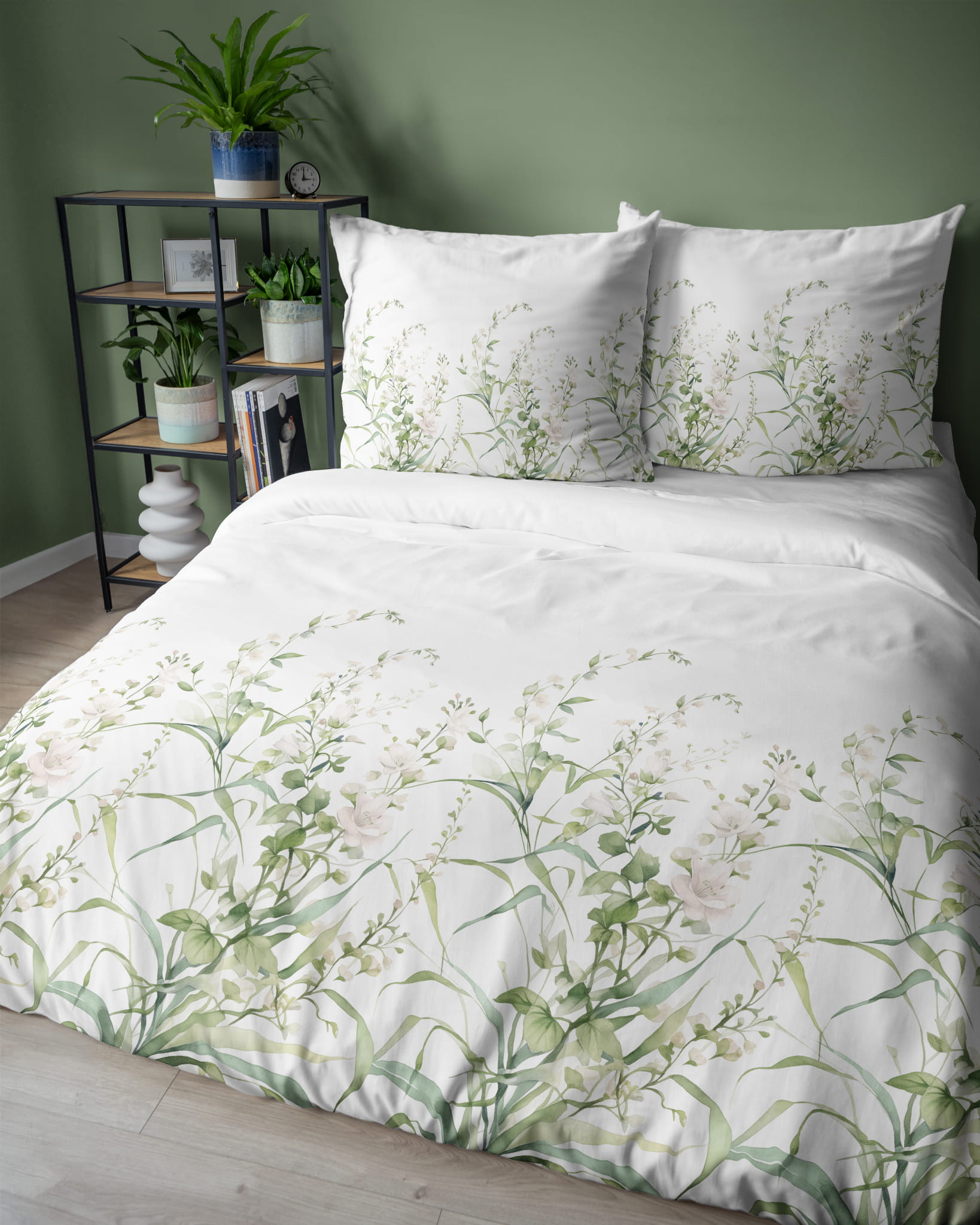Pościel Bawełniana 220x200cm Liście Kwiaty Zielona