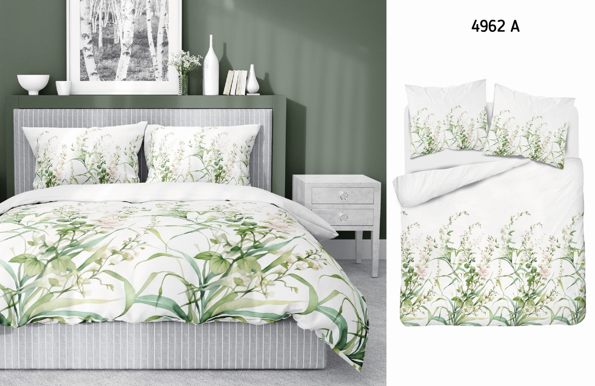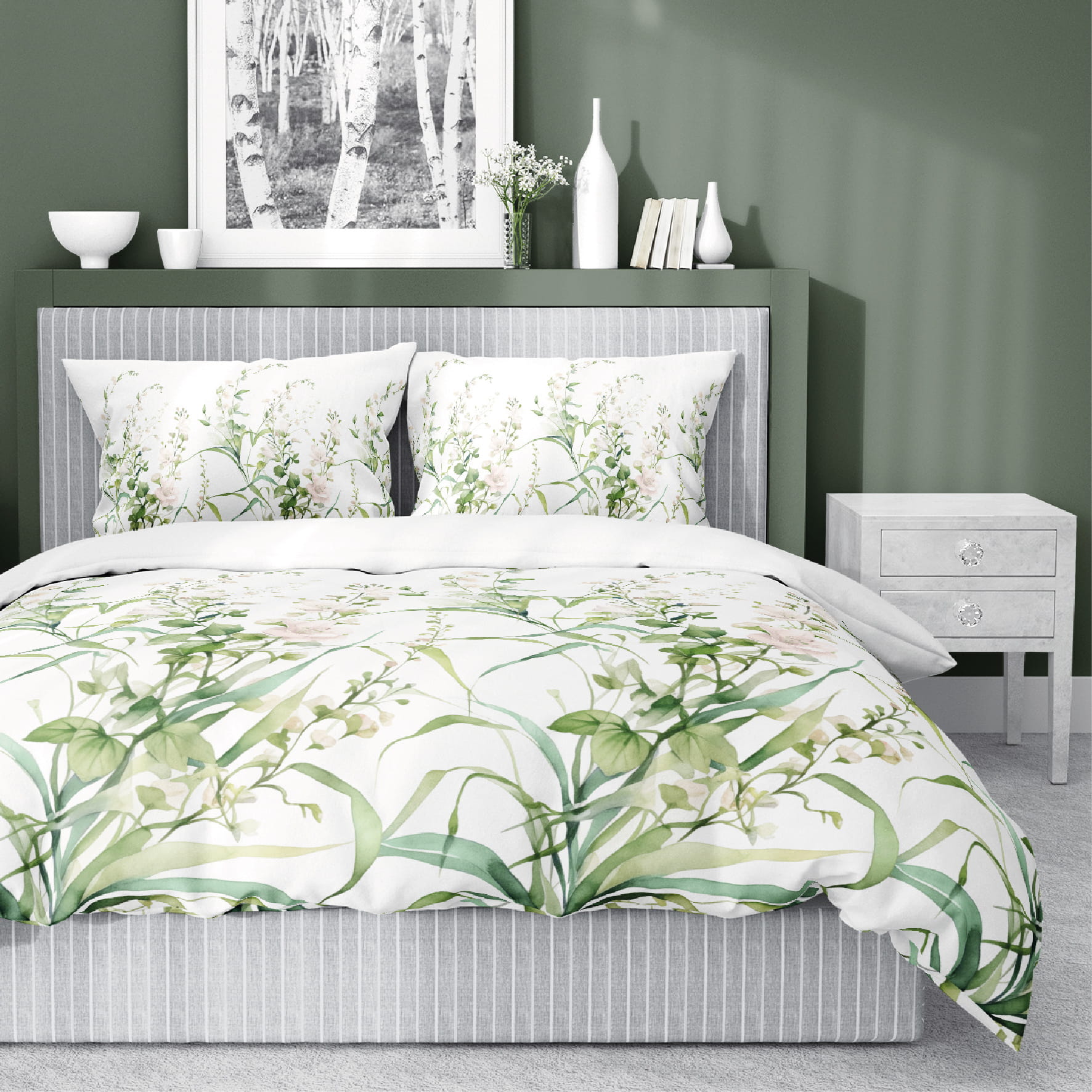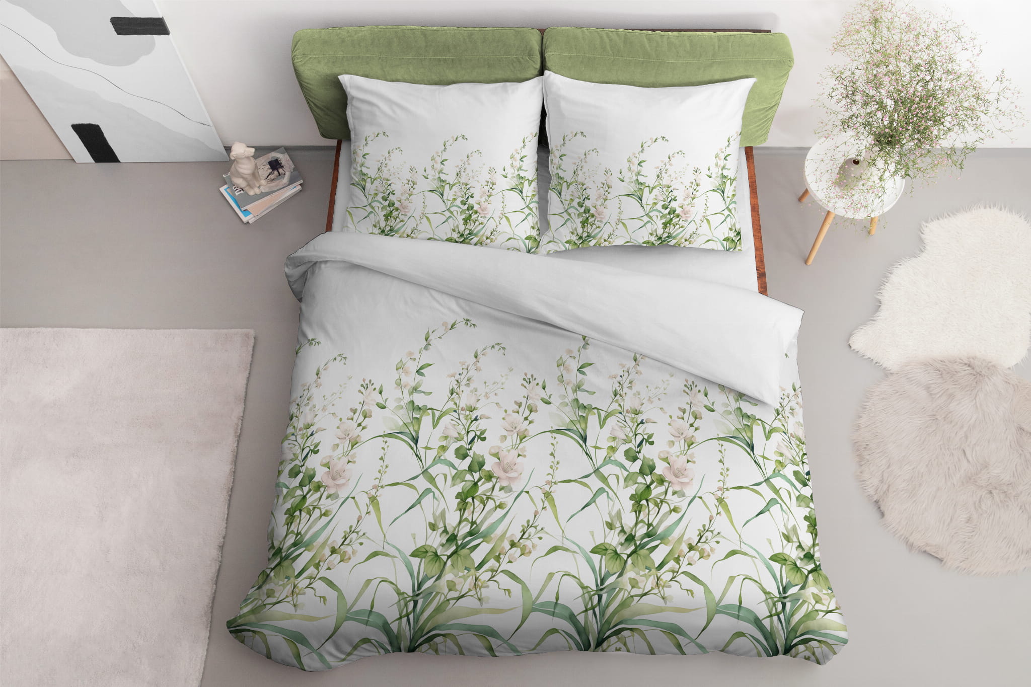 Pościel Bawełniana 220x200cm Liście Kwiaty Zielona