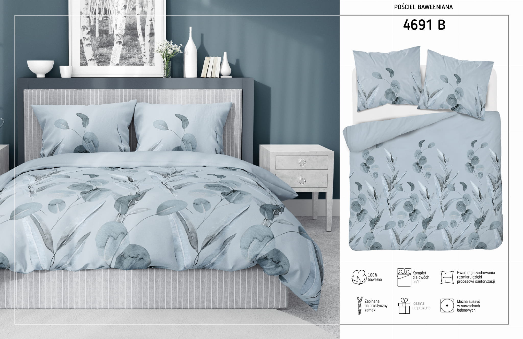 Dzięki specjalnej metodzie nadruku nie spiera się on nawet po dłuższym okresie użytkowania. Ponadto, pościel zachowuje swój rozmiar, dzięki procesowi sanforyzacji.