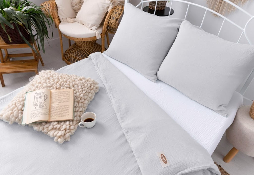 KOMPLET POŚCIELI BAWEŁNIANEJ MUŚLIN (poszwa 160x200 cm – 1 szt., poszewki – 70x80 cm – 2 szt.) muslin, muślina dwuwarstwowa