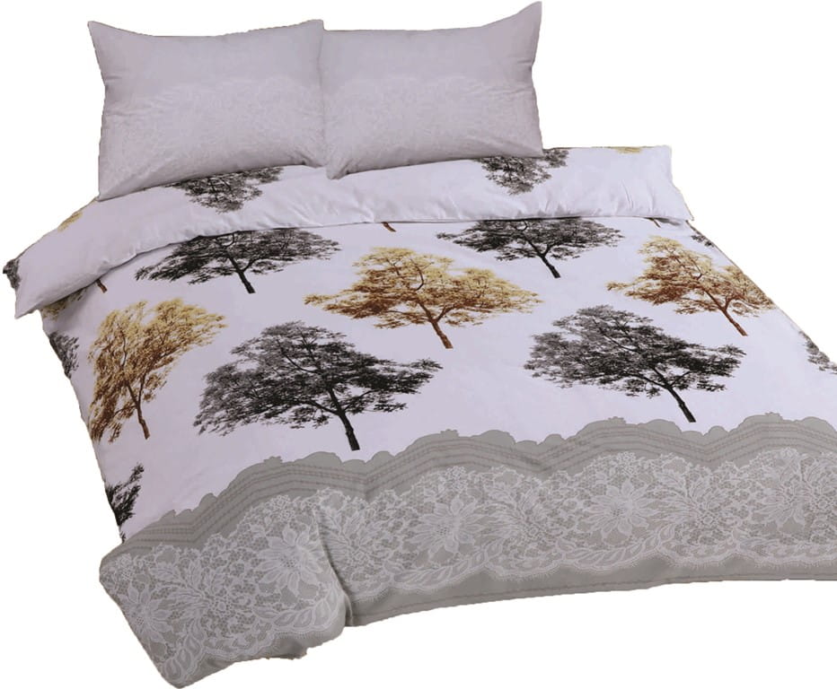 Pościel Bawełniana deSATIN RANFORCE 160x200 Drzewa szaro- złote R20