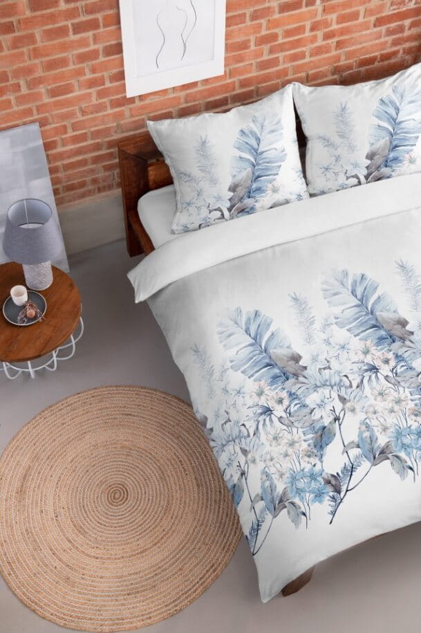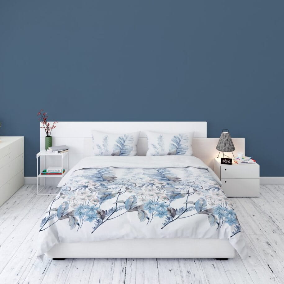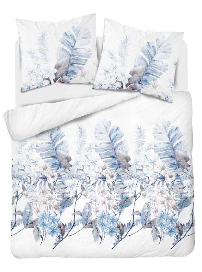 Pościel Flanelowa 220x200 Kwiaty Liście Błękitna