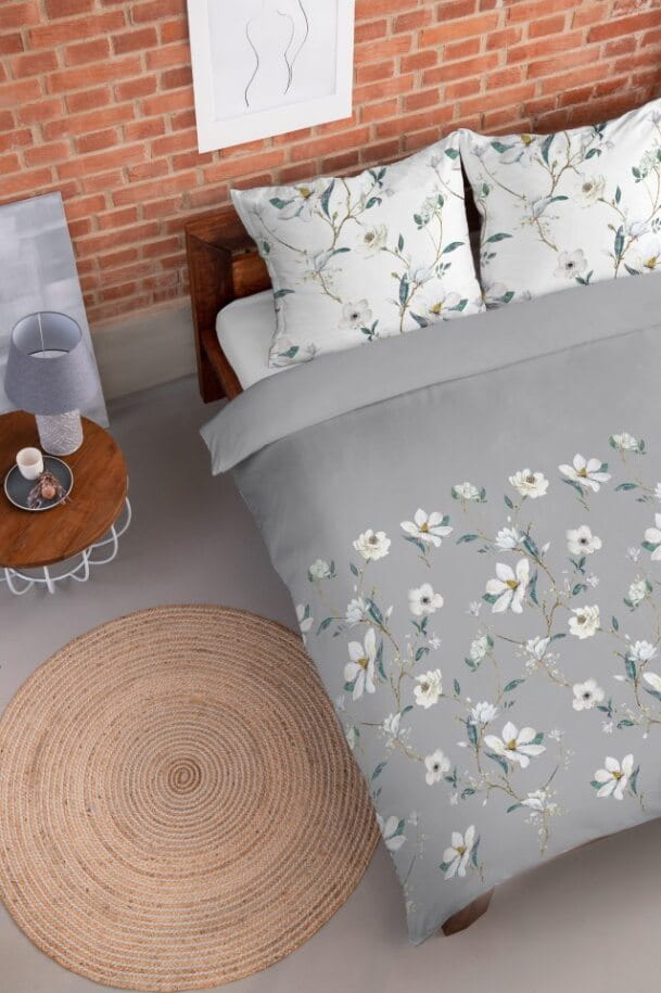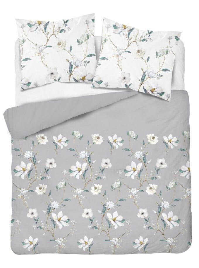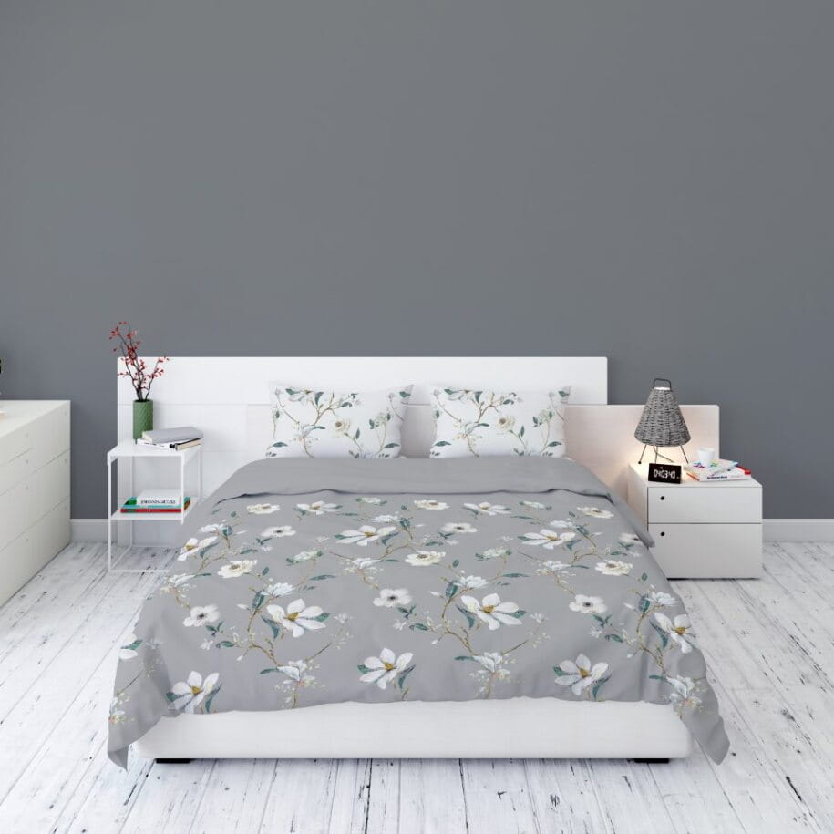 Pościel Flanelowa 220x200 Kwiaty Popielata