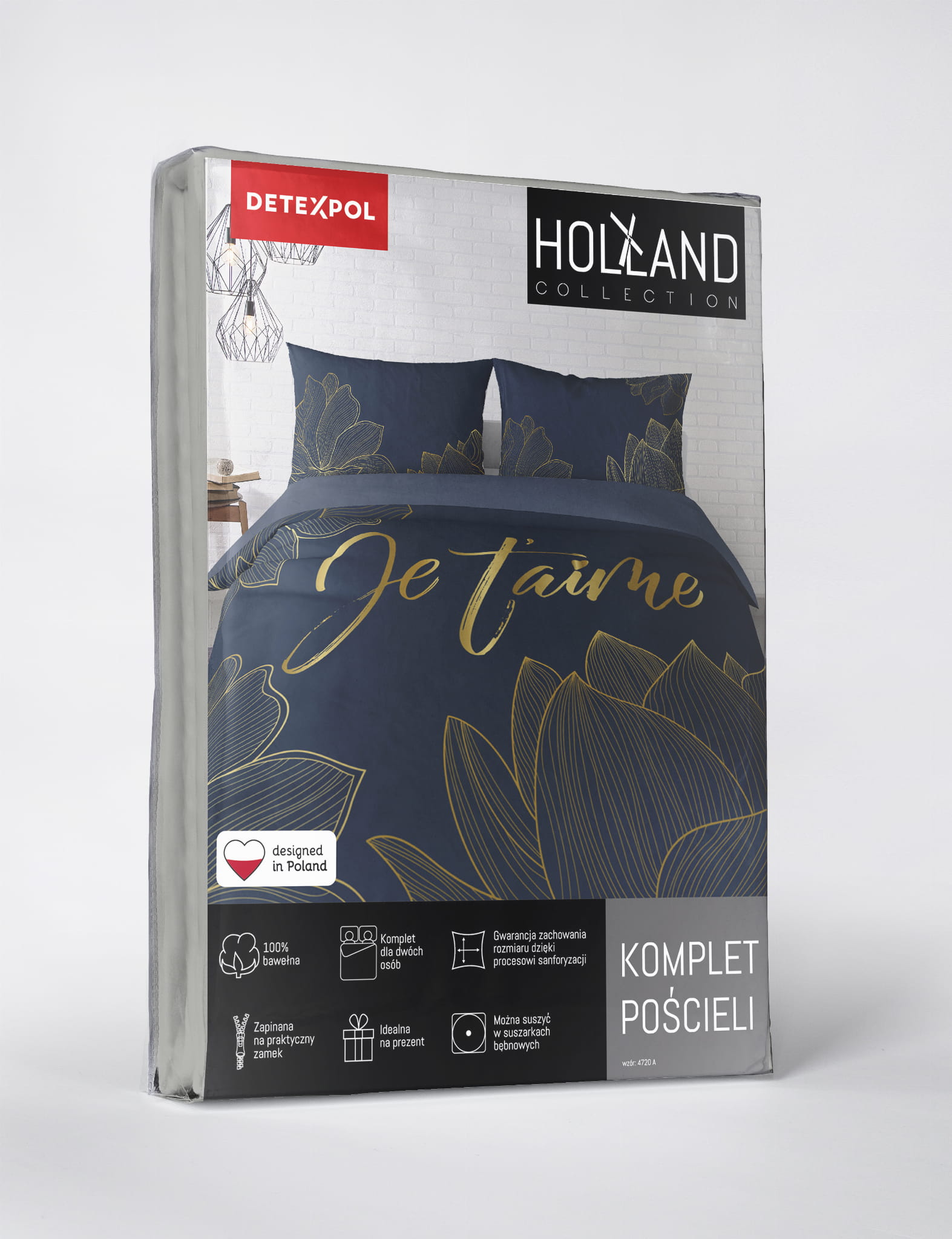 Pościele marki Holland Collection powstały z myślą o wymagających i odważnych klientach. Materiał, z którego zostały wykonane pościele Holland Collection poddawany jest procesowi sanforyzacji, co gwarantuje zachowanie rozmiaru nawet po wielu praniach. Naturalna bawełniana tkanina jest miękka i przyjemna w dotyku. Pościele Holland Collection charakteryzują się oryginalnym wzornictwem i intensywnymi kolorami, które wprowadzą nowoczesność i piękno do każdej sypialni.