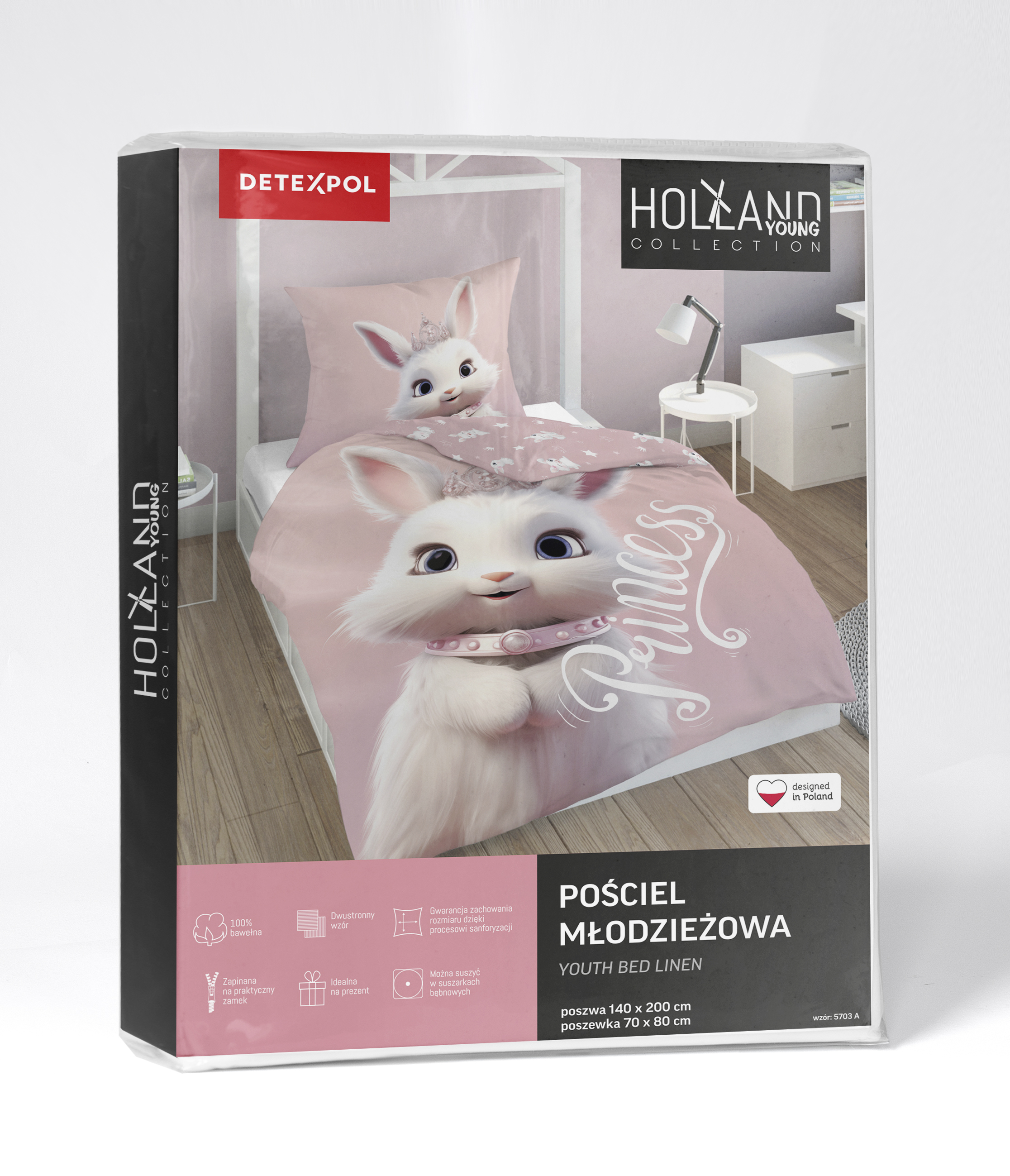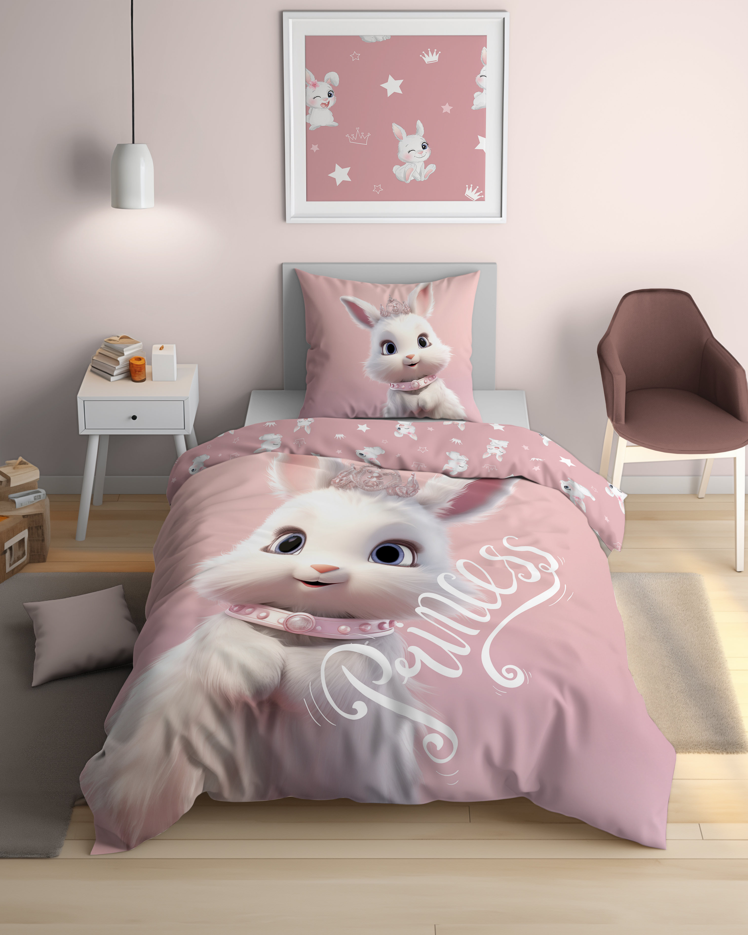 Pościel młodzieżowa 160x200 Króliczek Princess – 100% bawełna, dwustronna