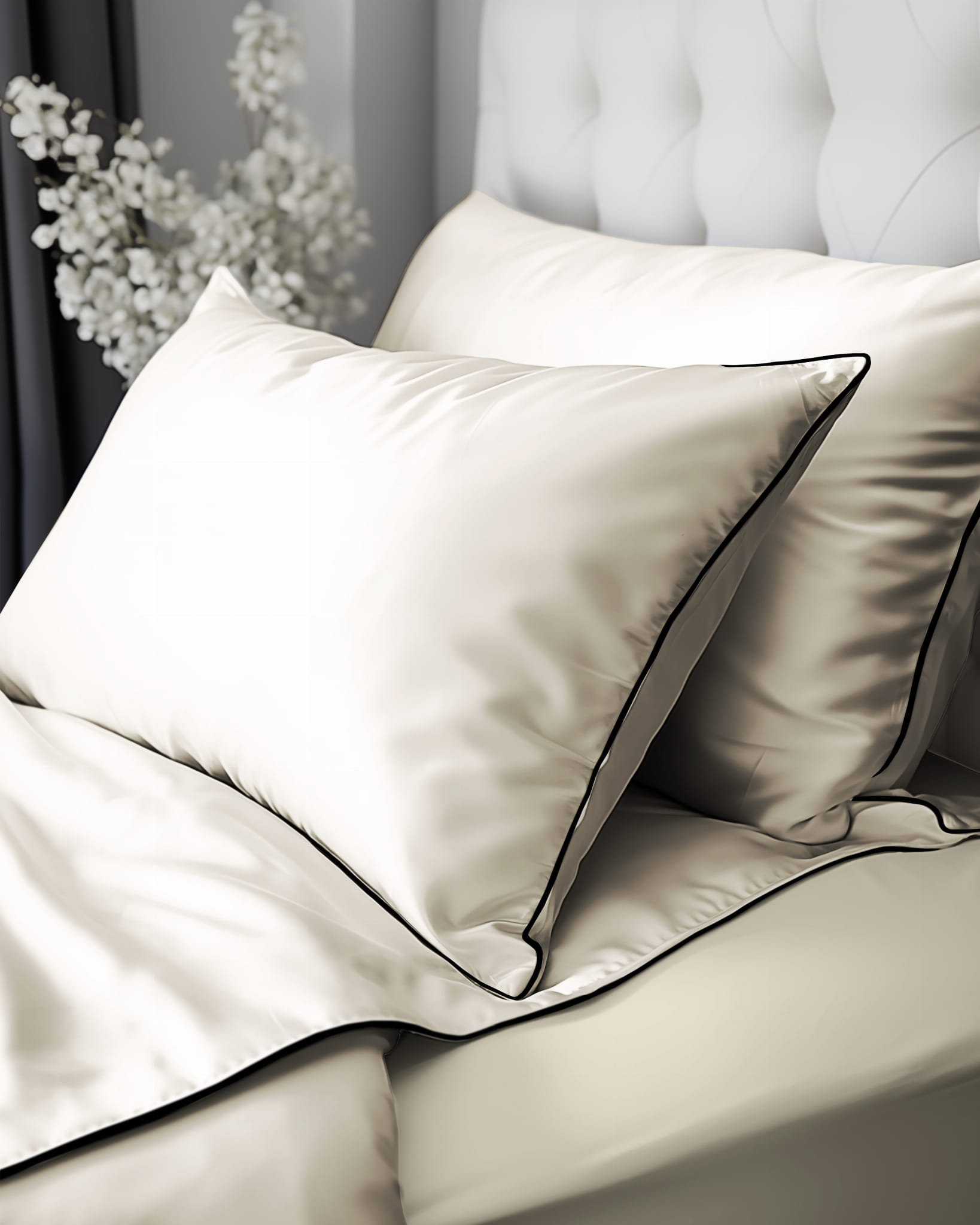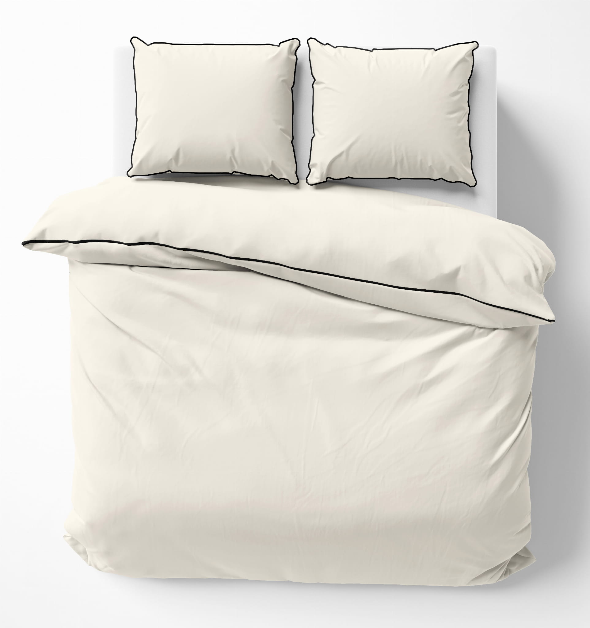 Minimalistyczny, jednokolorowy deseń z uroczą lamówką dodaje elegancji do każdego wnętrza sypialni. Jednorodna kolorystyka kompletu umożliwia łatwe dostosowanie do różnych stylów i kolorów pomieszczeń, nadając im spójną spokojną atmosferę.
