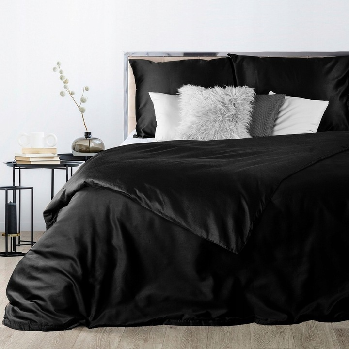 Pościel Satyna Bawełniana 160 x 200 Jednobarwna 3cz. Nova colour czarna