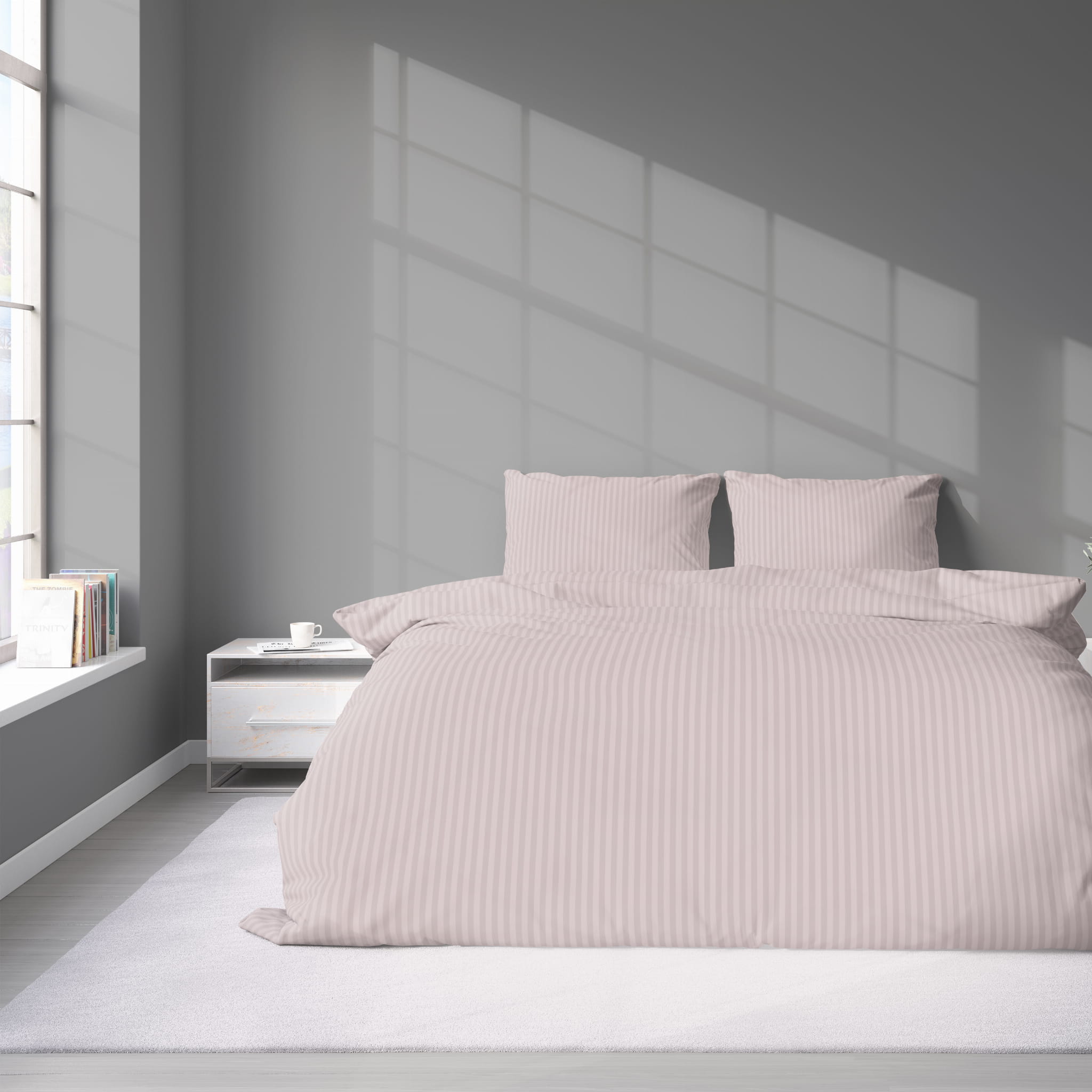 Pościel Satynowa 140x200 Gładka w Pasy Premium pudrowy róż