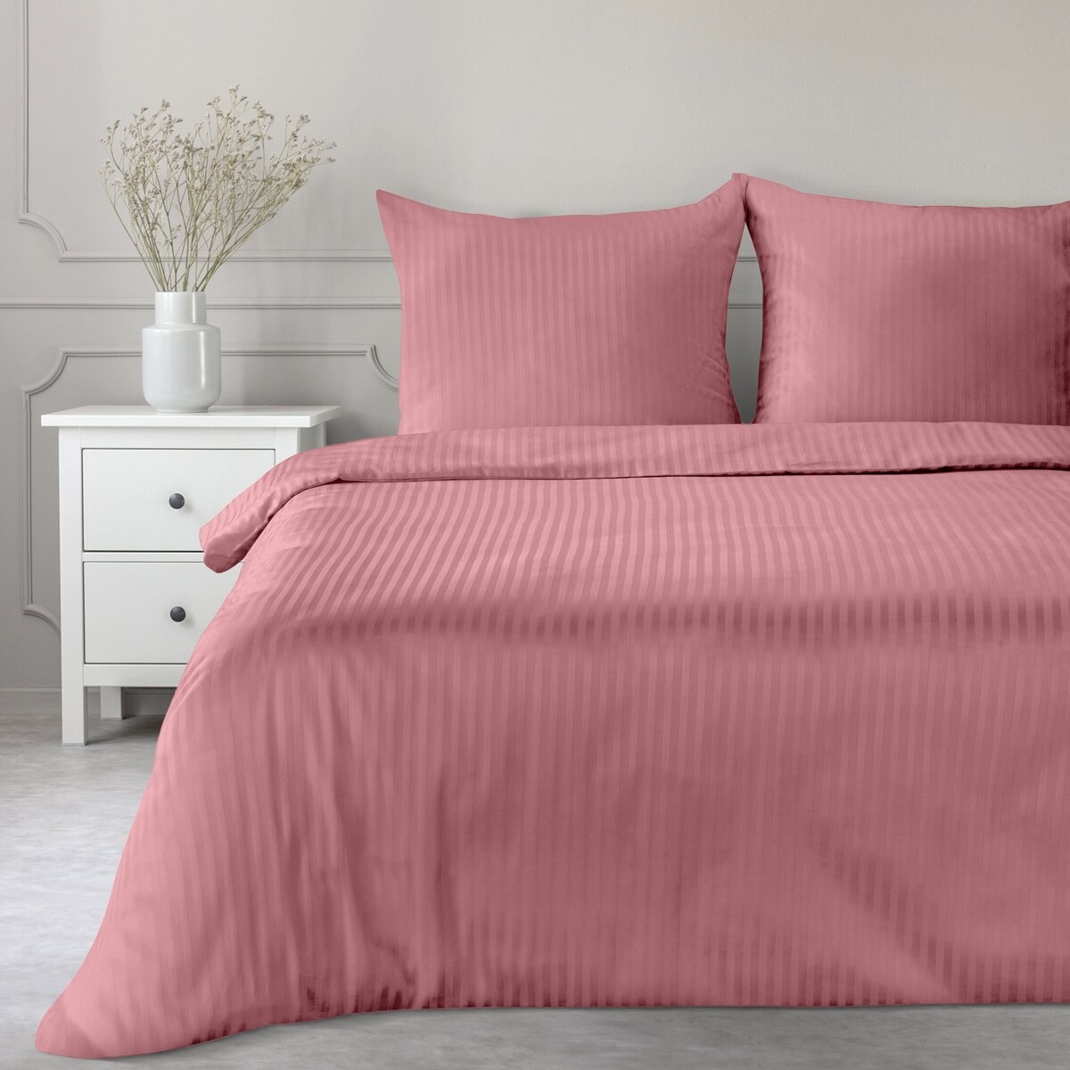 Pościel Satynowa 140x200 Gładka w Pasy Premium różowy pudrowy