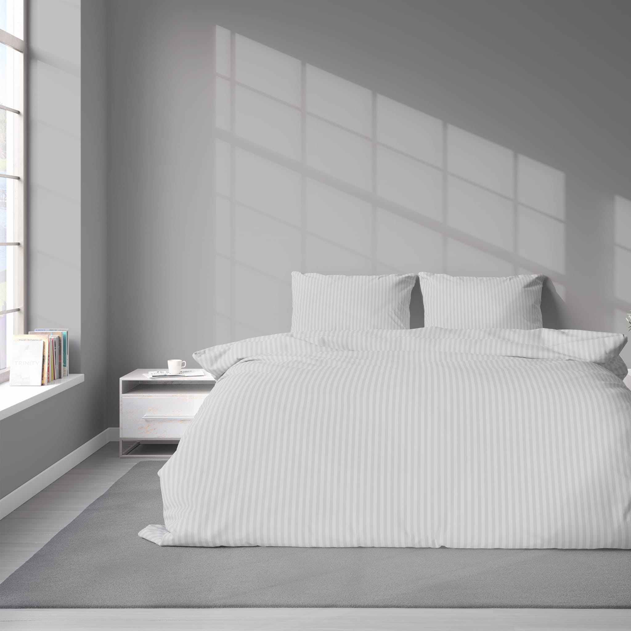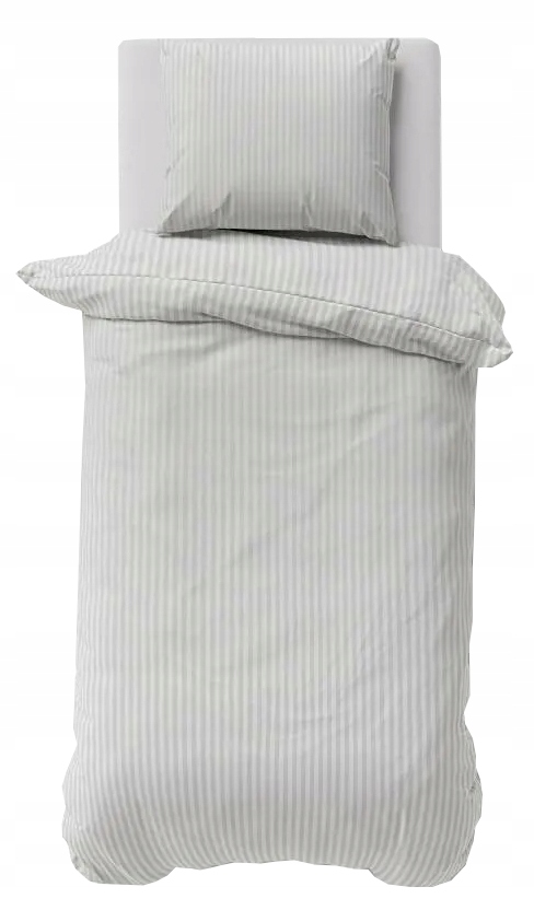 Pościel Satynowa 140x200 Gładka w Pasy Premium srebrny