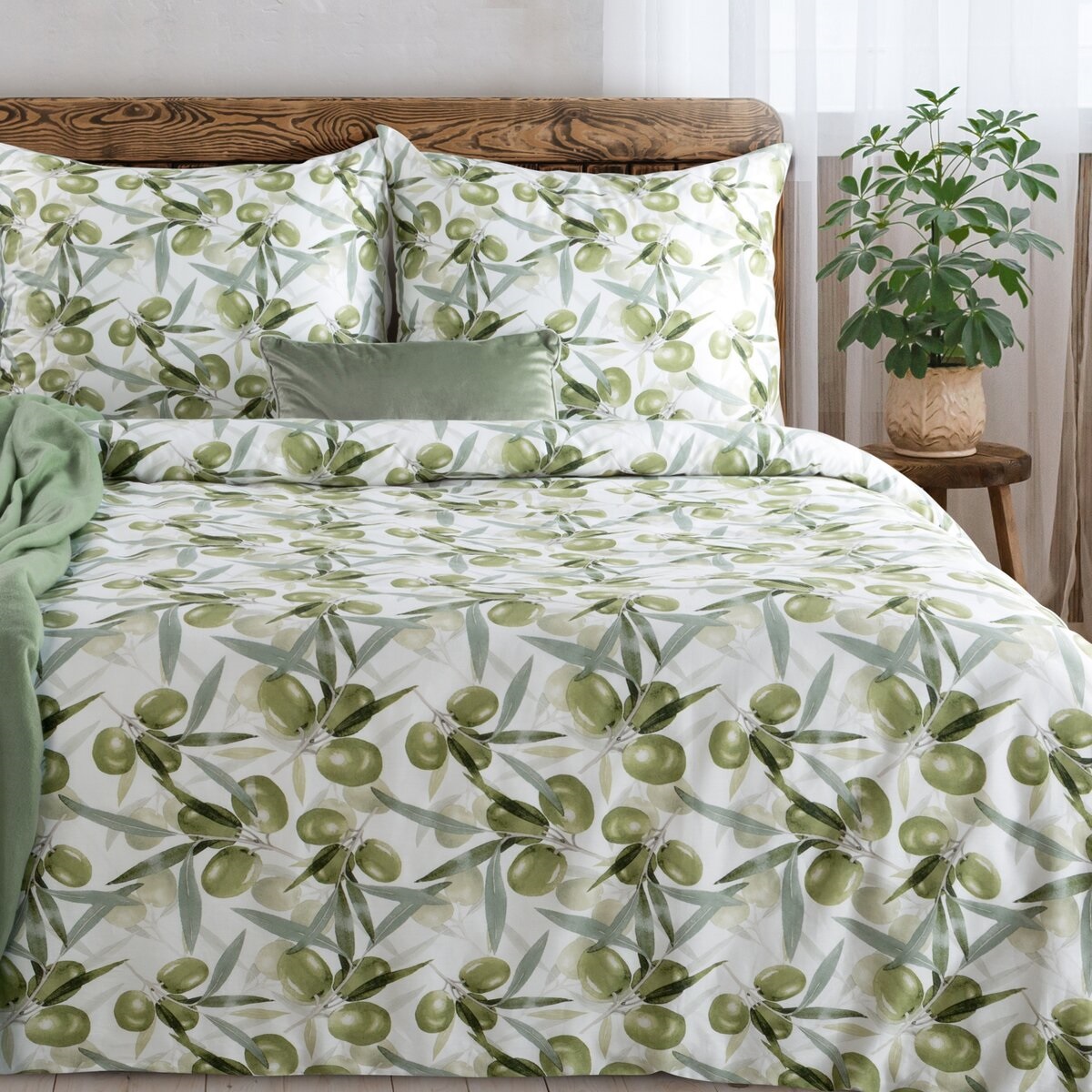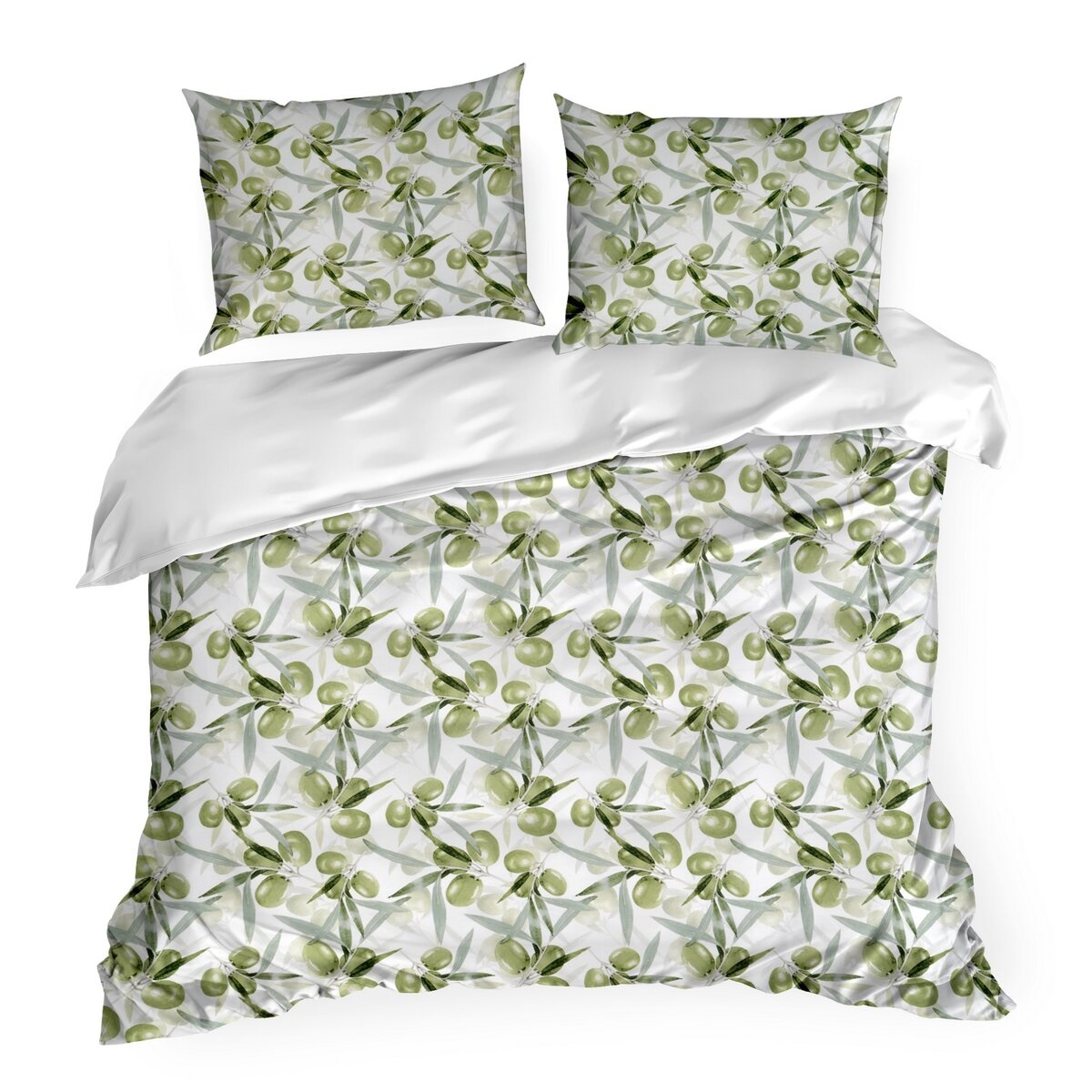 Pościel Satynowa 140x200 Oliwki zielony/biały