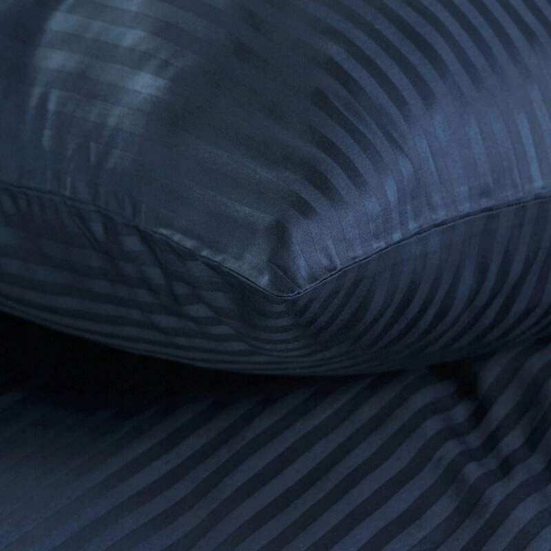 Pościel Satynowa 160x200 Gładka w Pasy Premium granat