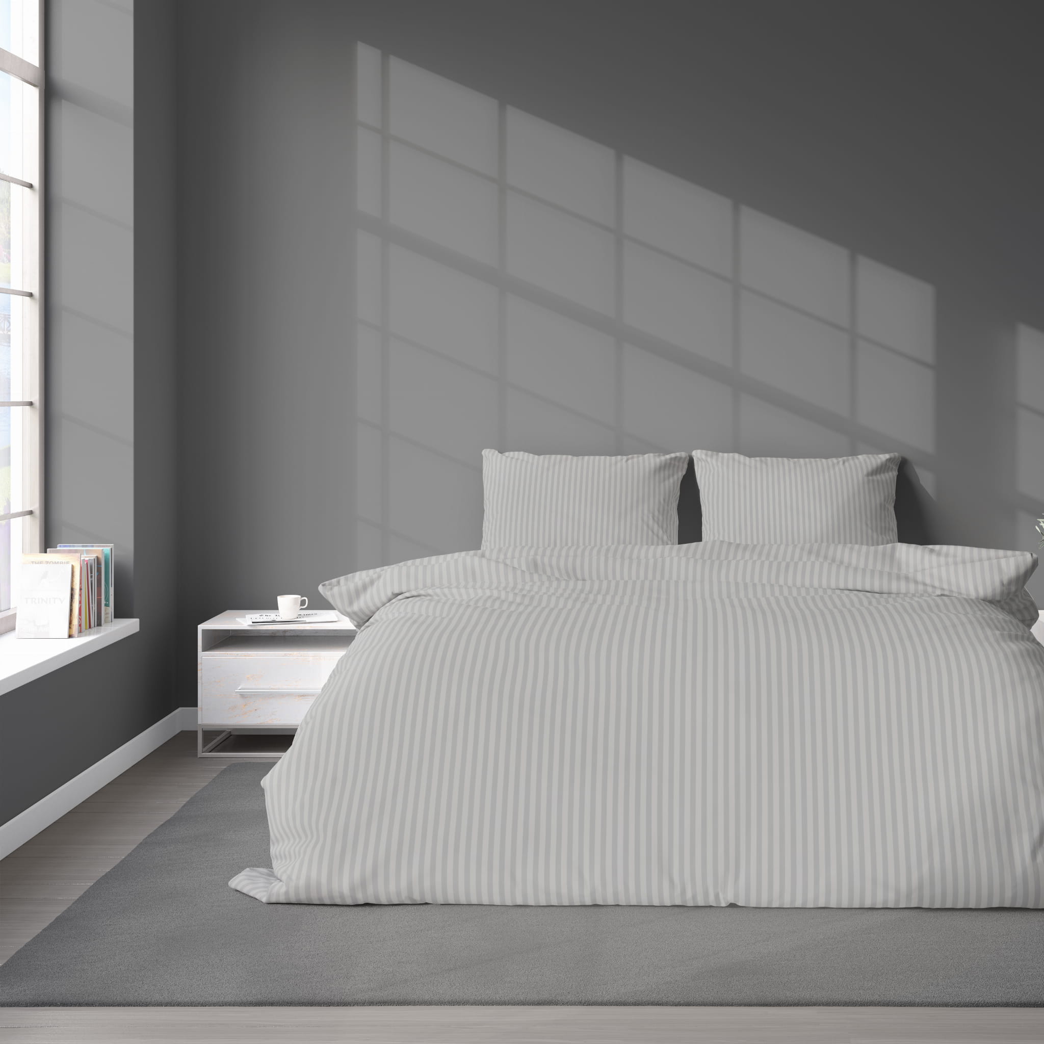 Pościel Satynowa 160x200 Gładka w Pasy Premium j.szary