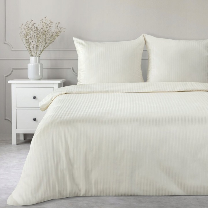Pościel Satynowa 160x200 Gładka w Pasy Premium kremowy