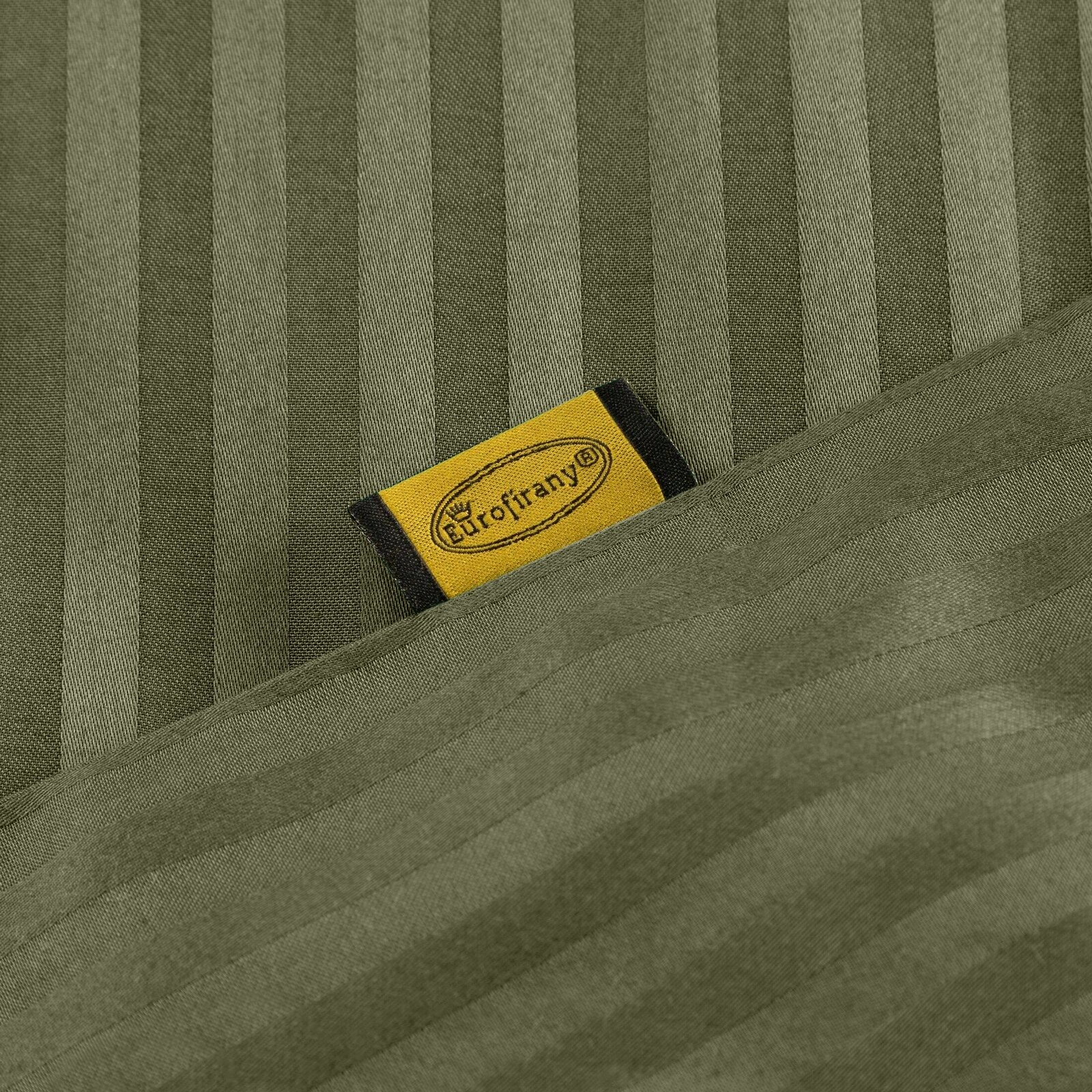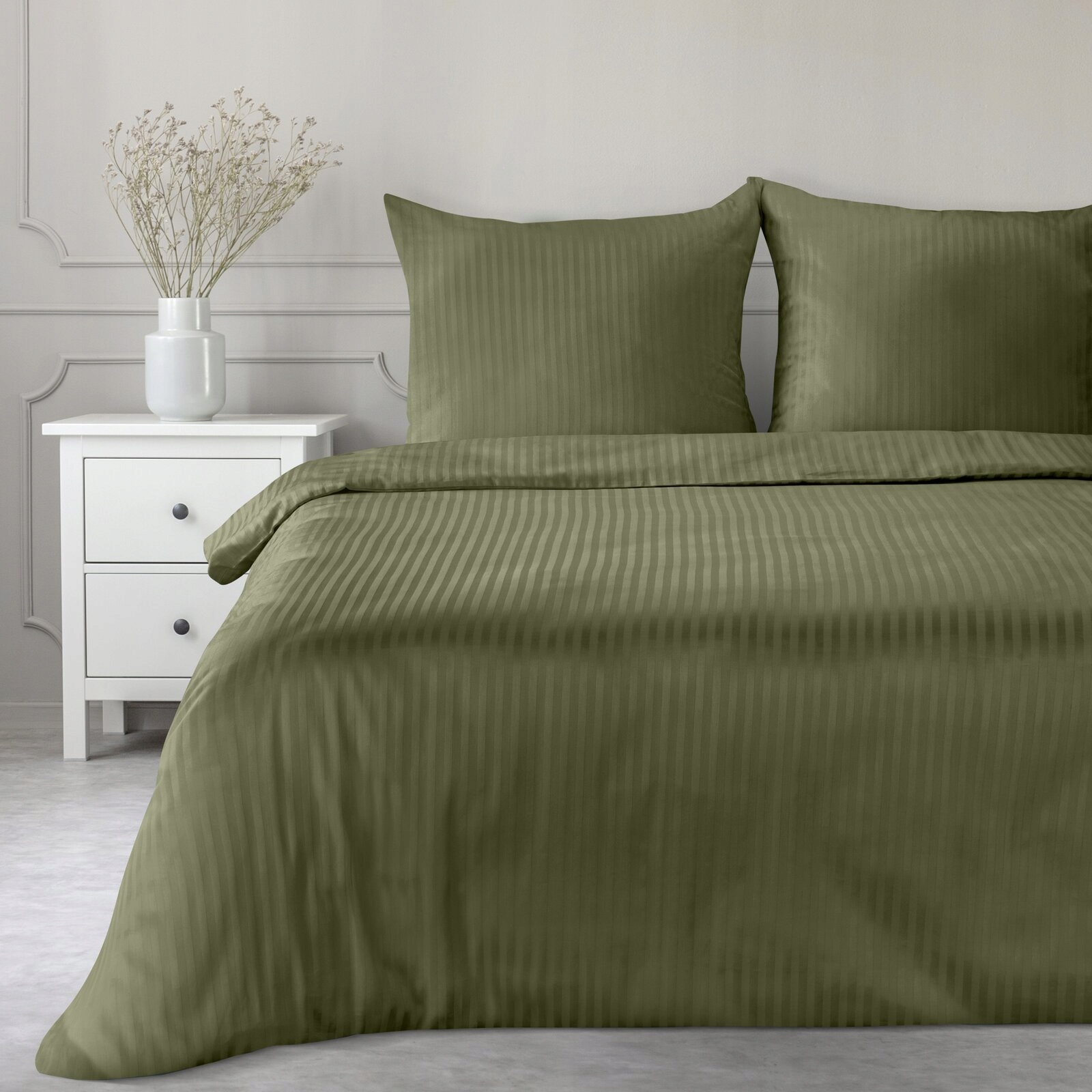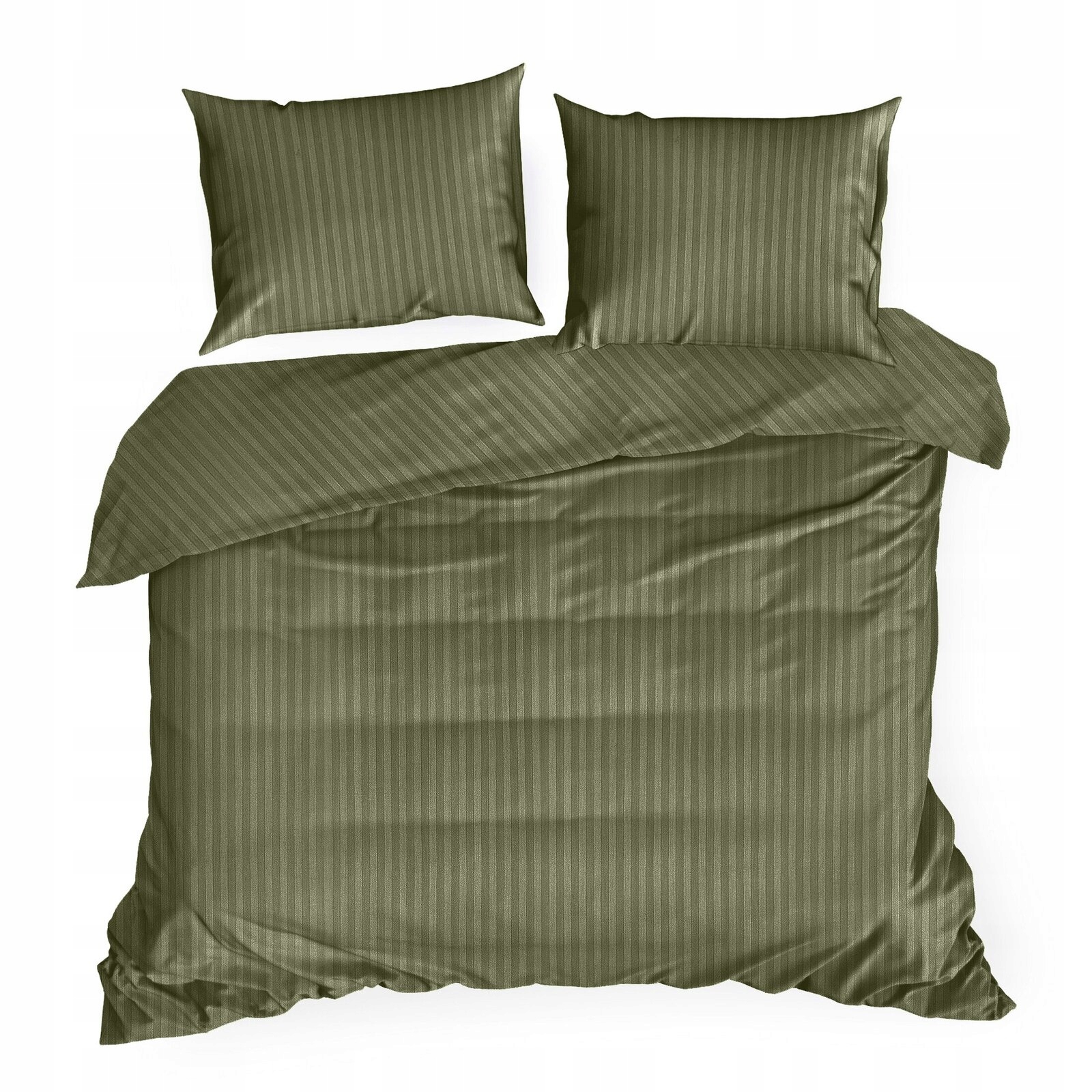 Pościel Satynowa 160x200 Gładka w Pasy Premium oliwkowy