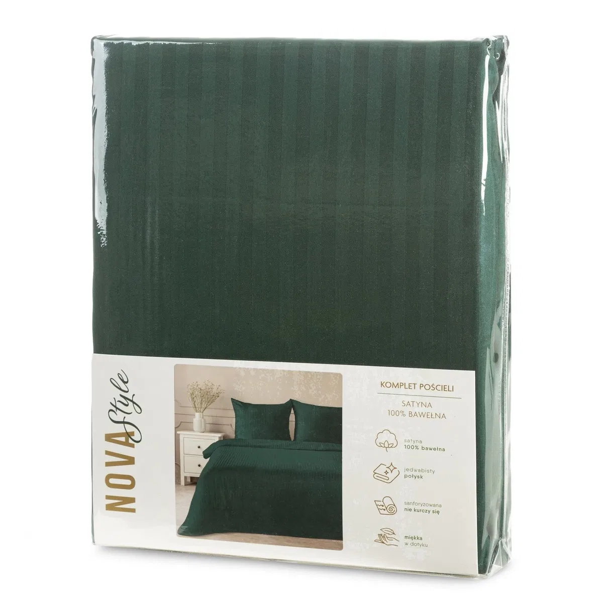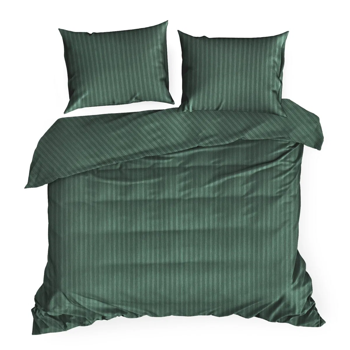 Pościel Satynowa 160x200 Gładka w Pasy Premium zielony