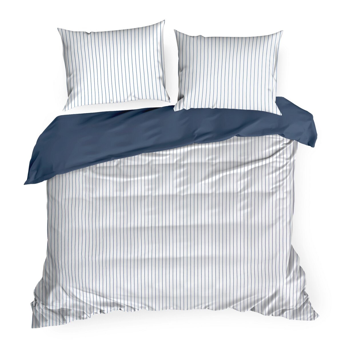 Pościel Satynowa 160x200 cm Paski – biało-granatowa