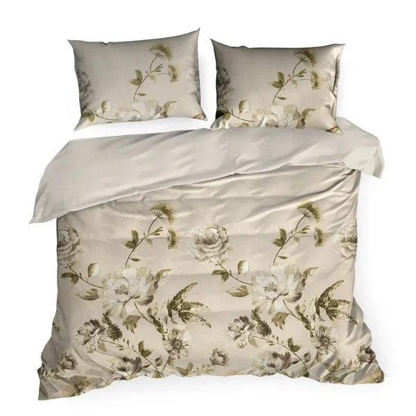 Komplet pościeli z satyny bawełnianej – 220 x 200 cm | Kolor: Beżowy. Oliwkowy