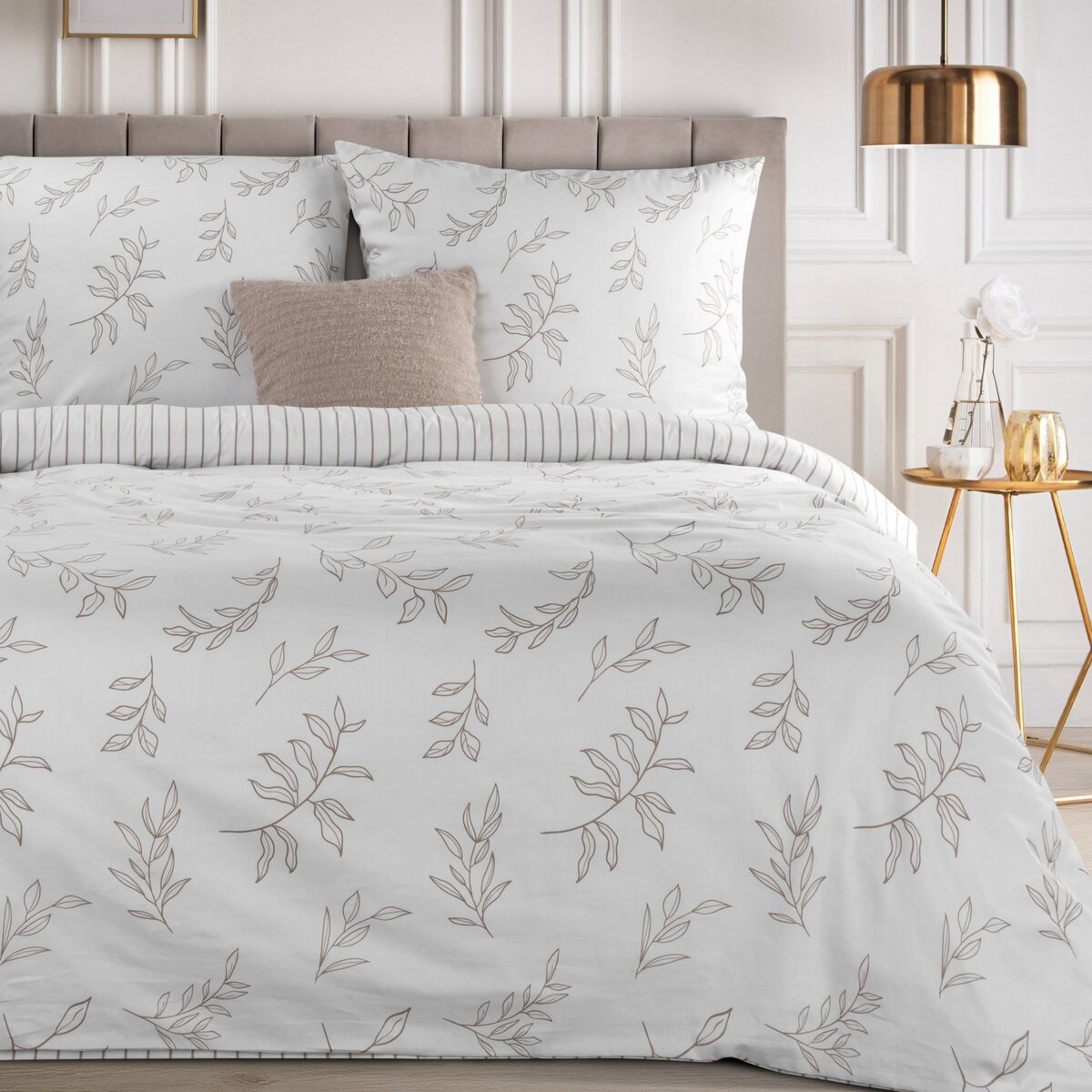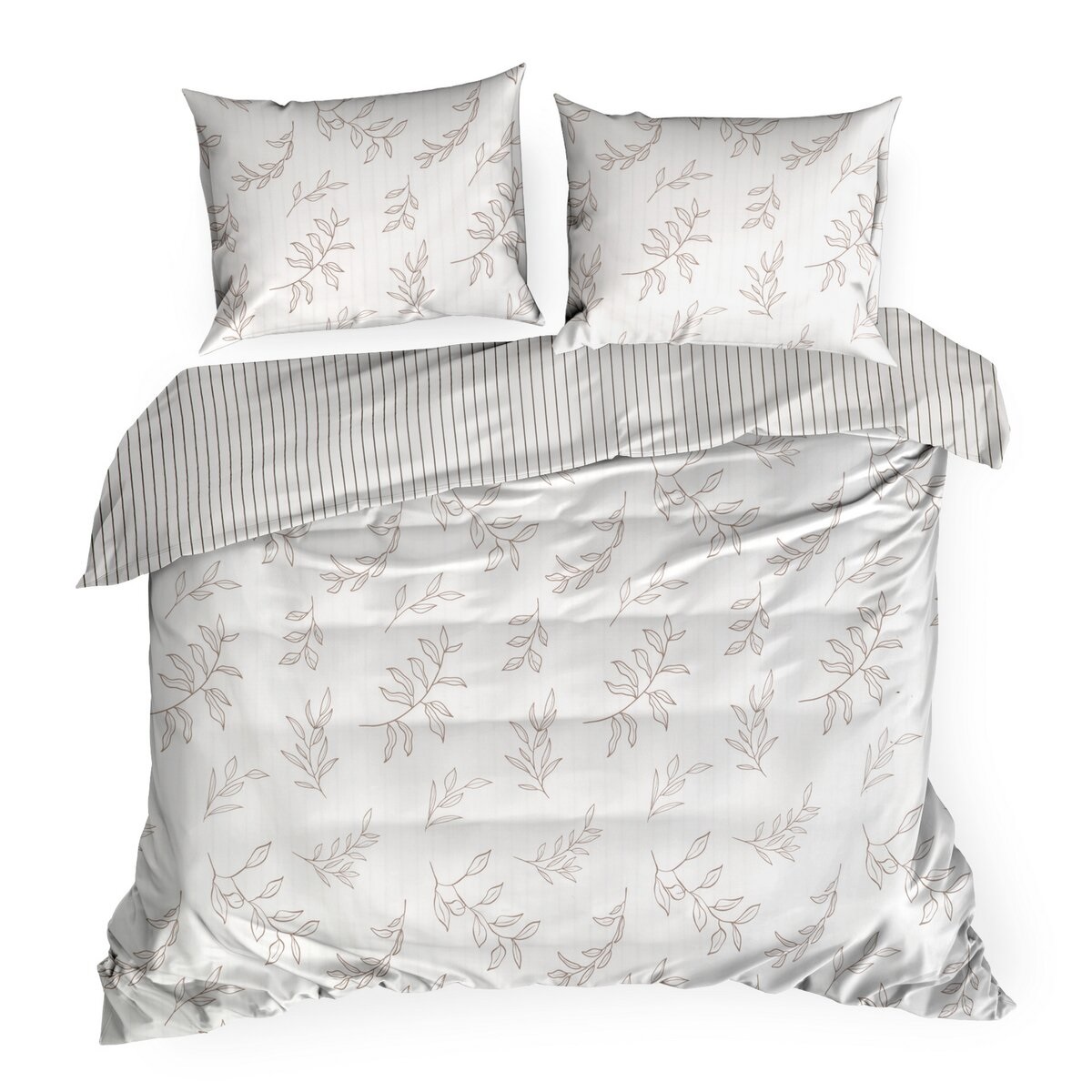 Pościel Satynowa 220x200 cm Liście – beżowe na jasnym tle