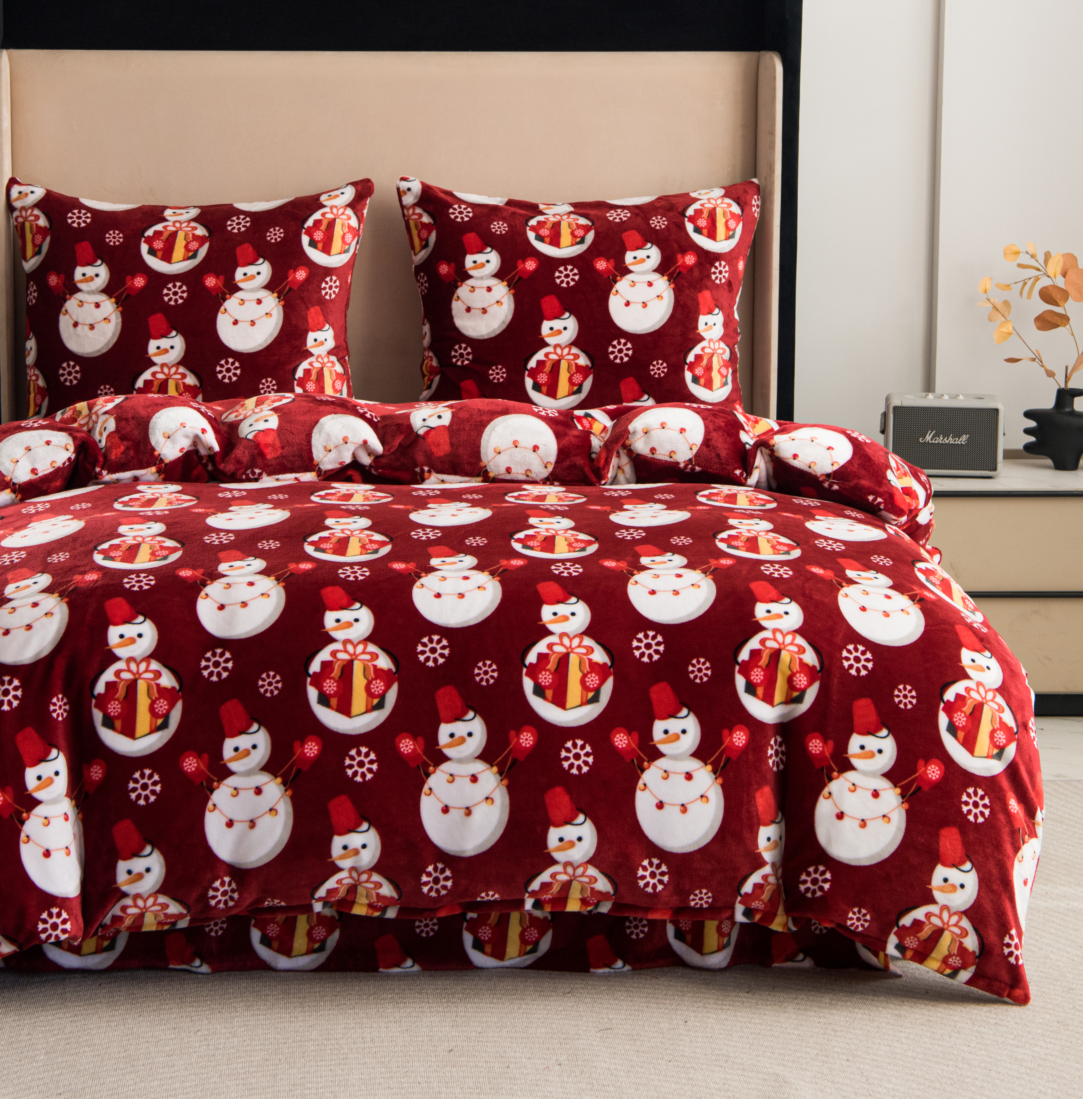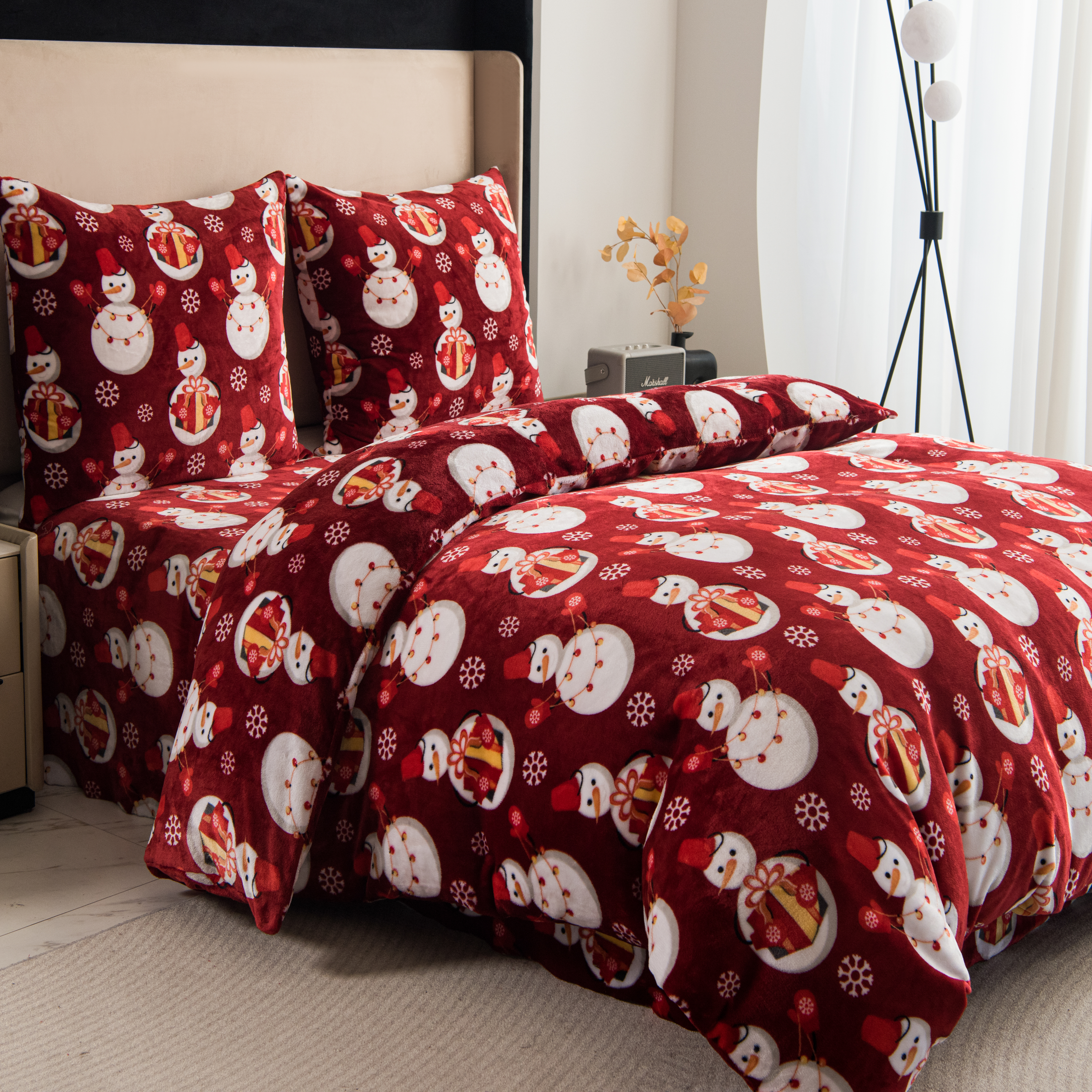 Pościel świąteczna pluszowa 160x200 + 2x70x80 – zimowa, ciepła, miękka