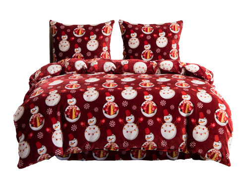 Pościel Świąteczna 160x200 Bałwanki Czerwone Pluszowa