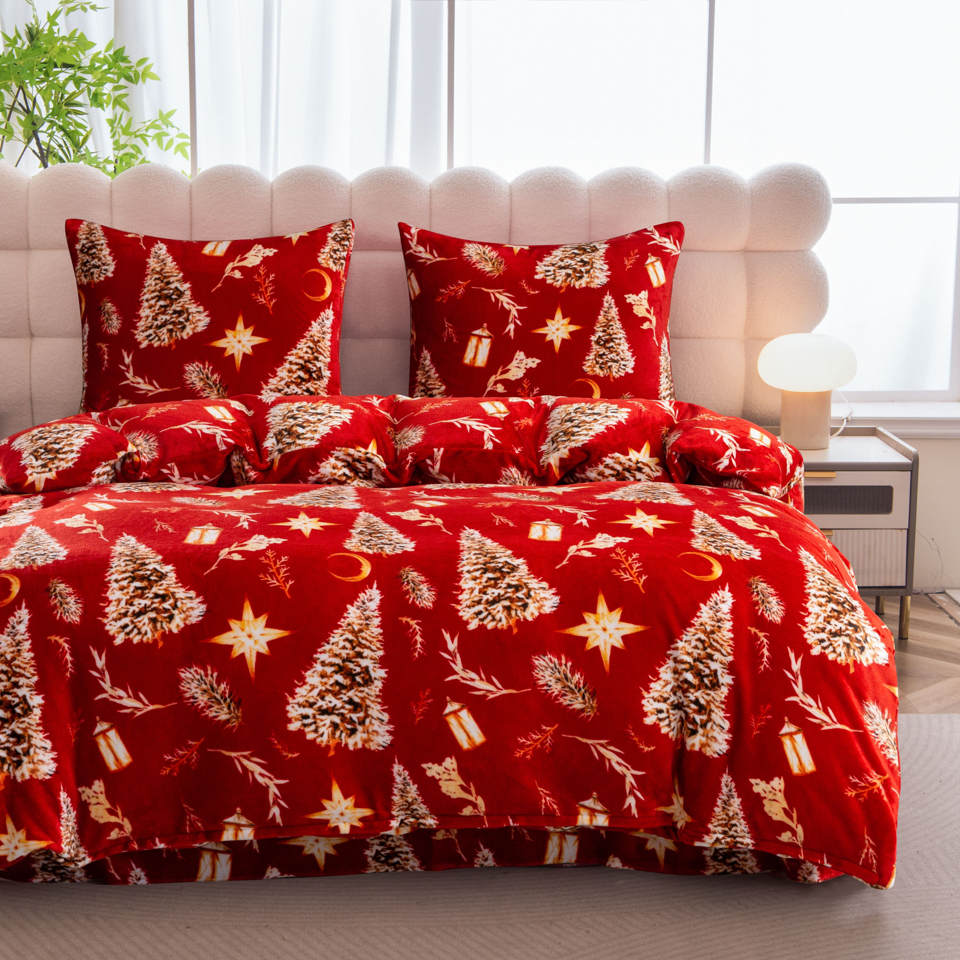 Pościel świąteczna pluszowa 160x200 + 2x70x80 – zimowa, ciepła, miękka