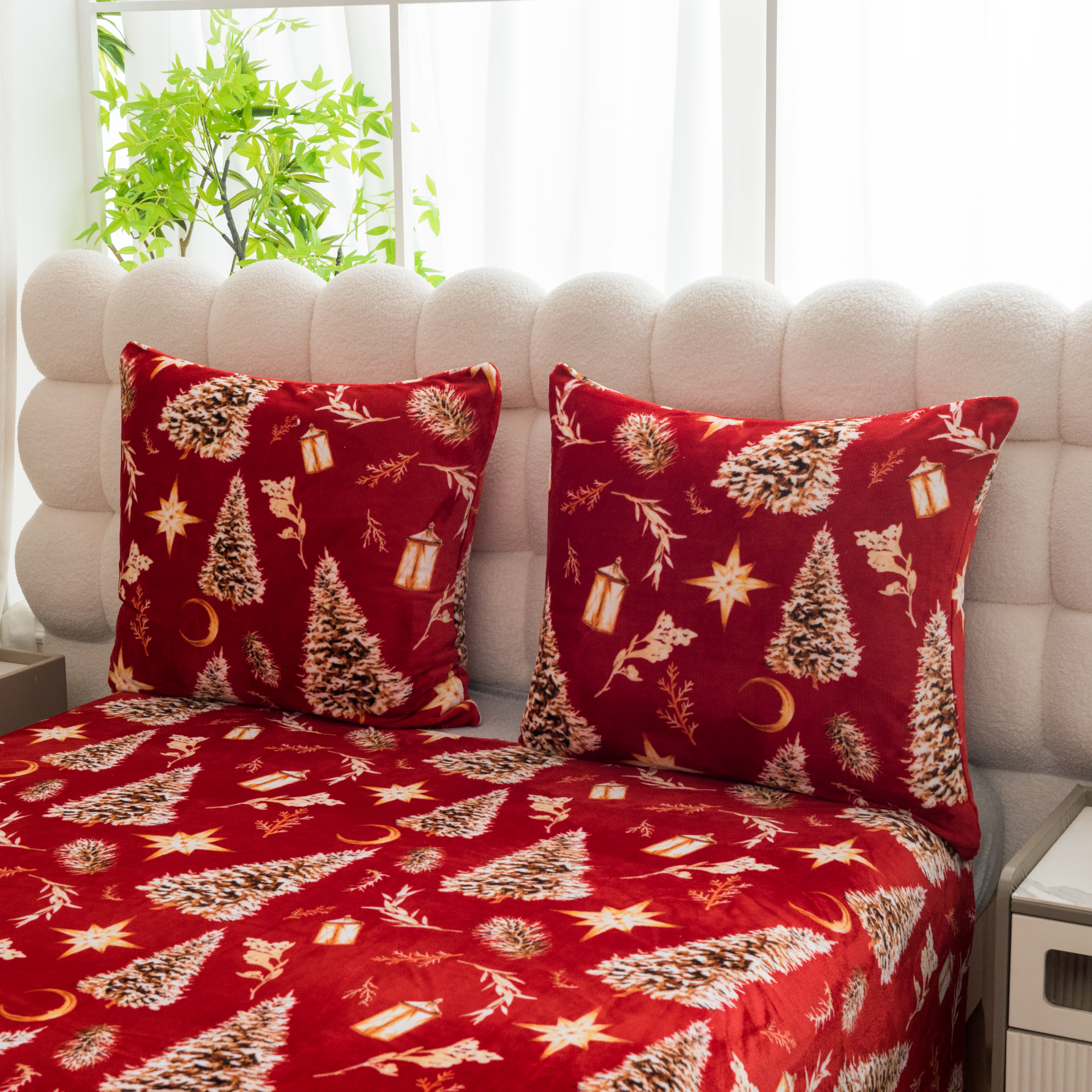 Pościel Świąteczna 160x200 Choinki Gwiazdki Czerwona Pluszowa