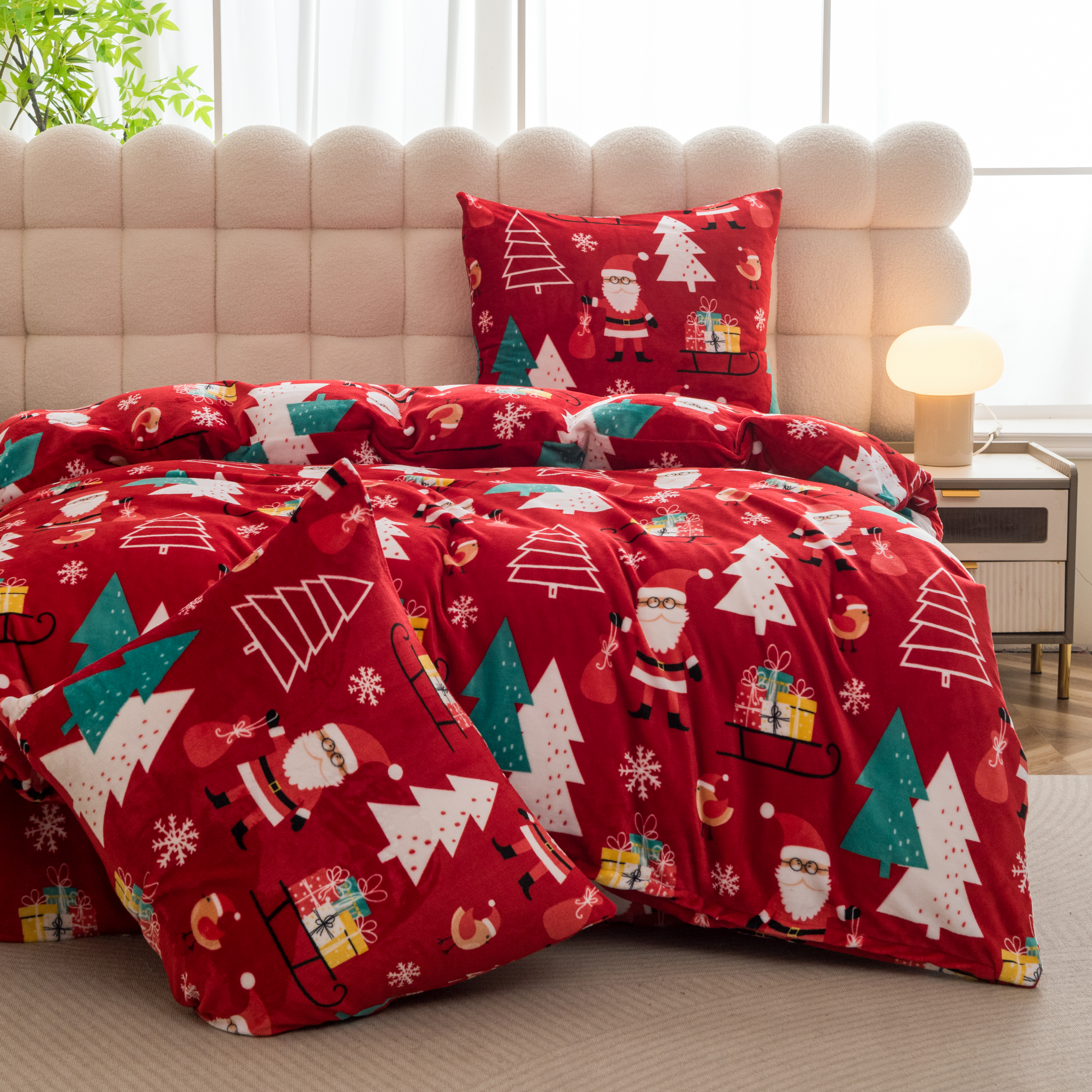 Wprowadź do swojej sypialni wyjątkowy, świąteczny klimat z kompletem pościeli wykonanym z miękkiej mikrofibry typu miś. Gruby, przyjemny w dotyku materiał zapewnia ciepło i komfortowy sen nawet w najchłodniejsze zimowe noce.